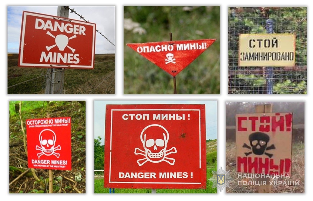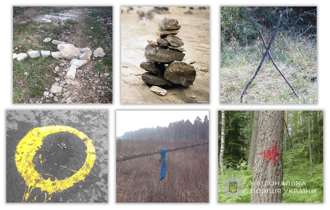 До небезпечних зон слід відносити всі ділянки місцевості, на яких, за вашою думкою, можуть знаходитись вибухонебезпечні предмети, або ділянки будь-яким чином позначені як небезпечні, а саме: