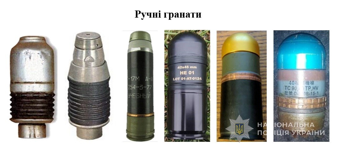Для розпізнавання вибухонебезпечних предметів передивись та запам'ятай зовнішній вигляд та основні ознаки найпоширеніших з них.