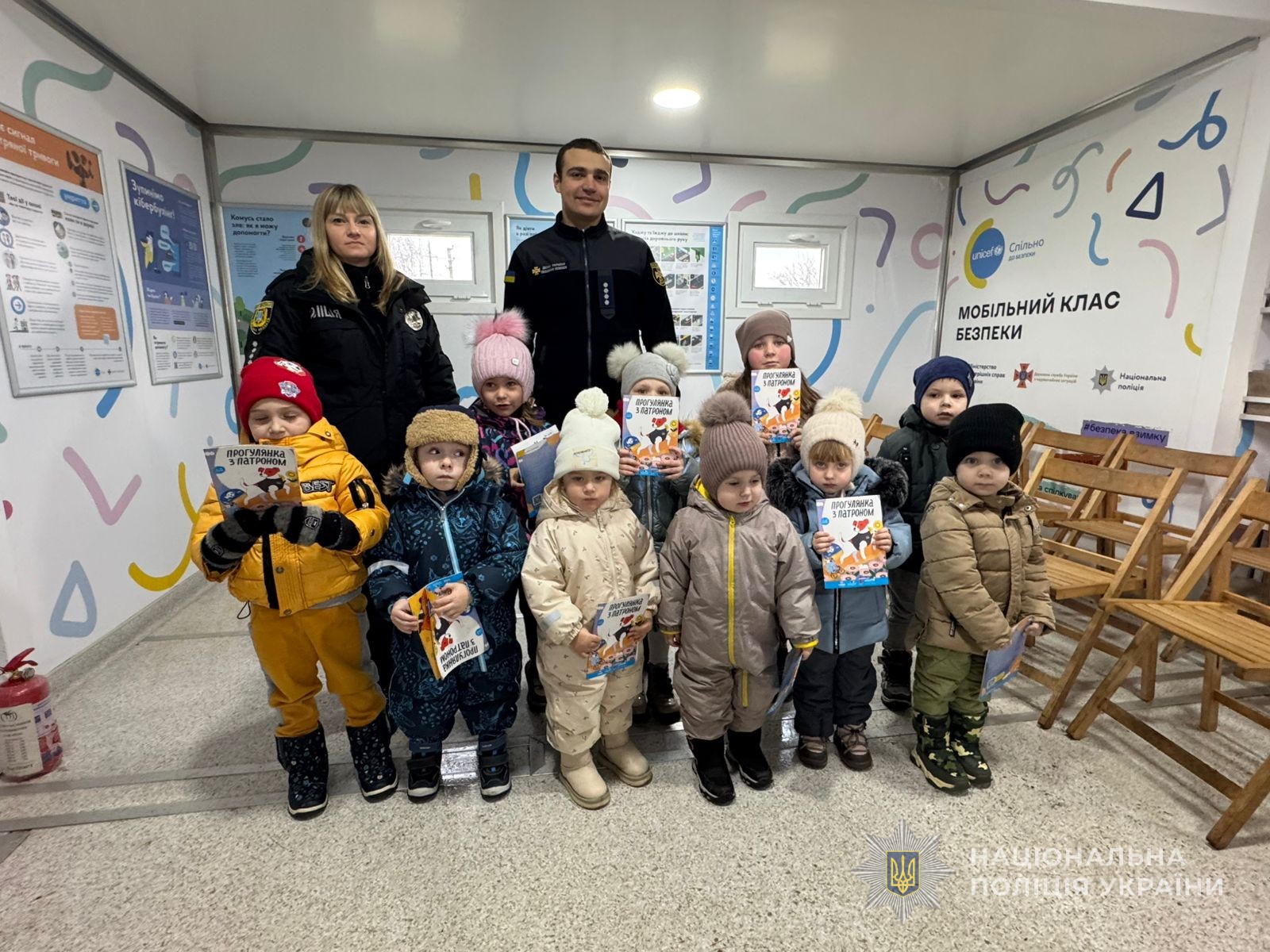 Вихованцям дитячого садка, для яких відвідування цього безпекового простору стало яскравою подію, поліцейські і рятувальники подарували тематичні розмальовки, в яких їхній улюбленець пес Патрон, навчає правил поведінки в різних небезпечних ситуаціях. Малюків закликали дослухатись до порад мультгероя і нікуди не ходити без супроводу дорослих.