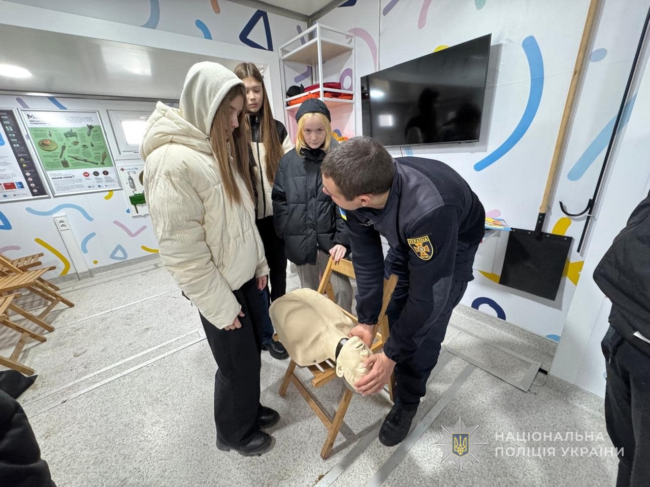 Як розповіла ювенальна поліцейська Ольга Чебан, правоохоронці за допомогою макетів, якими оздоблений клас, навчали підлітків користуватись вогнегасником, надавати елементарну домедичну допомогу постраждалим, зокрема робити штучне дихання, застосувати джгут і шини. За допомогою дорожніх знаків вчили правил дорожнього руху, які вбережуть від травмувань та нещасних випадків.