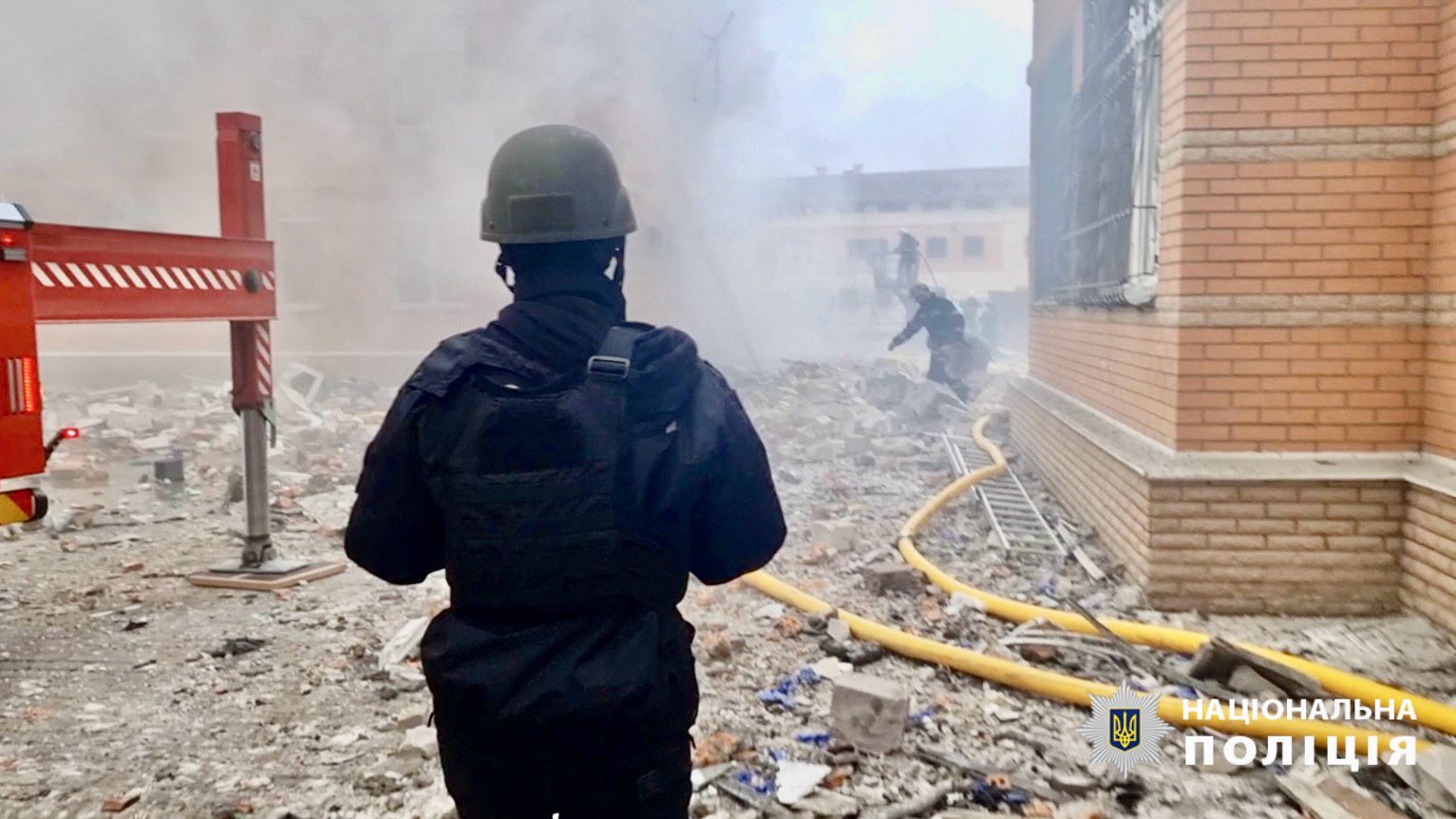 Поліцейські розбирають завали, дістають людей, тварин, надають необхідну допомогу постраждалим, оглядають та фіксують наслідки ворожої атаки, збирають докази військового злочину росії, опитують громадян, забезпечують правопорядок на місцях подій.