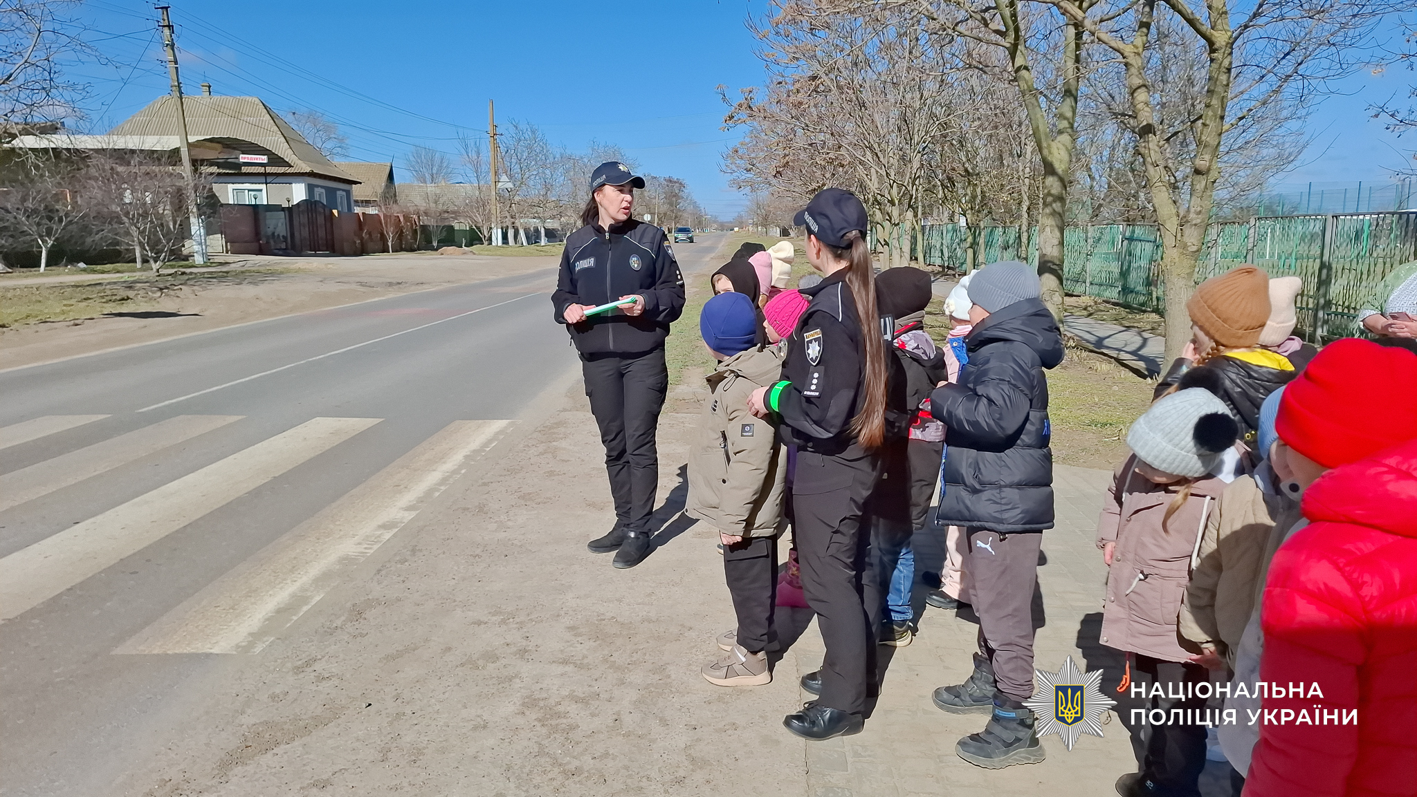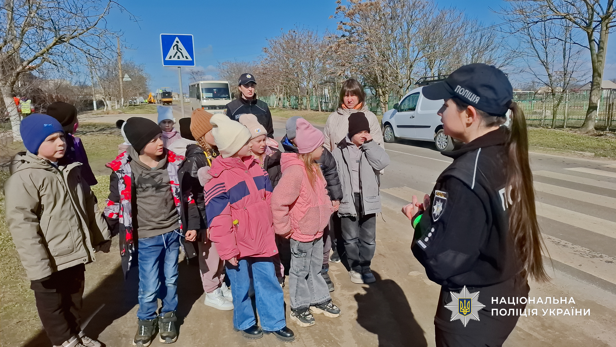Інспекторка служби освітньої безпеки лейтенантка поліції Наталя Данилюк спільно з інспекторкою з дотримання прав людини старшою лейтенанткою поліції Христиною Бойко пояснили школярам, як правильно переходити дорогу, чому важливо користуватися пішохідними переходами, дотримуватися сигналів світлофора та бути максимально уважними поблизу транспорту.