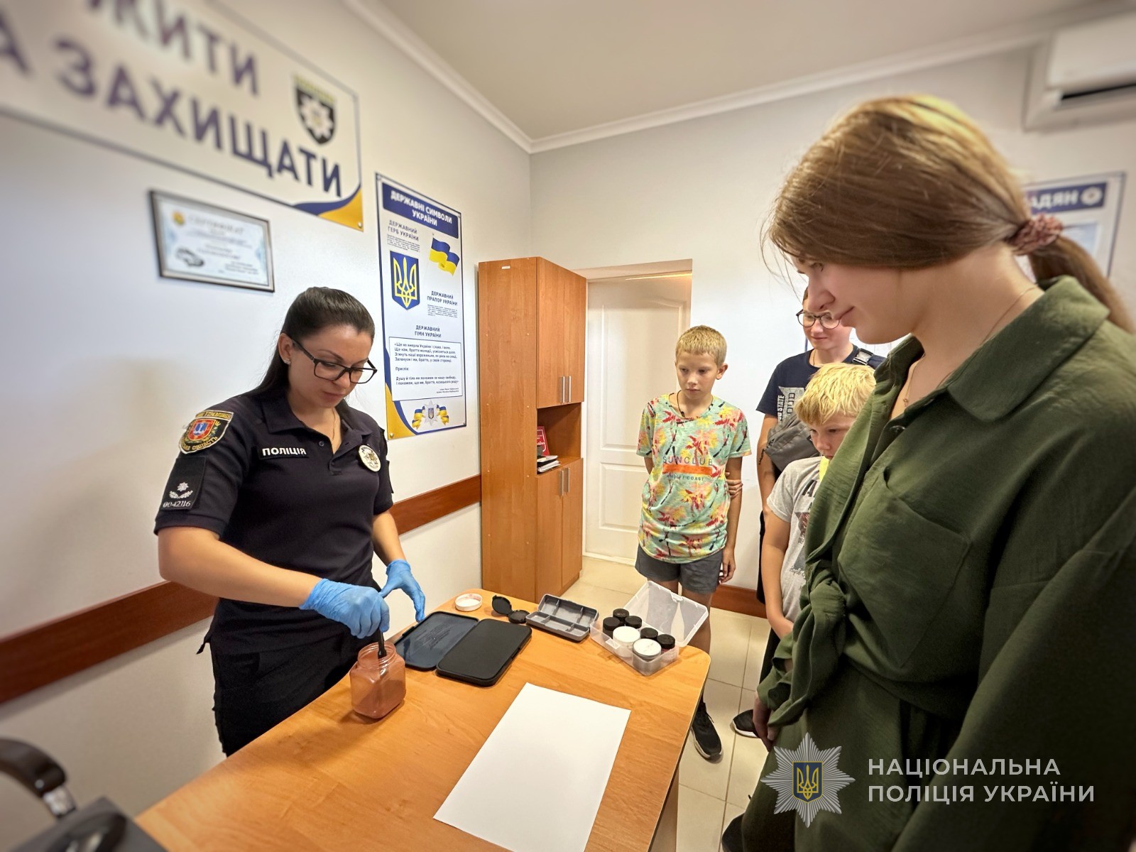 Особливу зацікавленість у юних гостей викликав майстер-клас із дактилоскопії, під час якого вони самостійно знімали відбитки пальців, відчувши себе справжніми криміналістами.