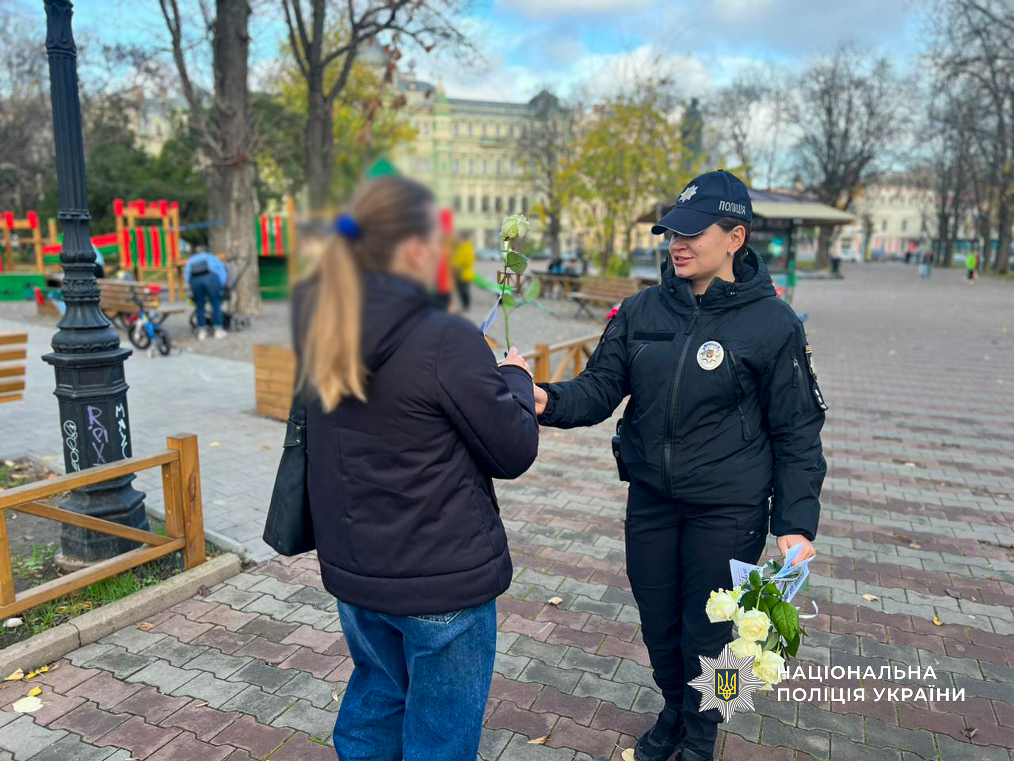 В Одесі поліцейські вийшли на центральні вулиці міста, щоб подарувати жінкам і дівчатам троянди. Такий жест покликаний був нагадати, що увага, доброта та турбота – це те, на що заслуговує кожна людина, і ніщо не може бути підставою для насильства.