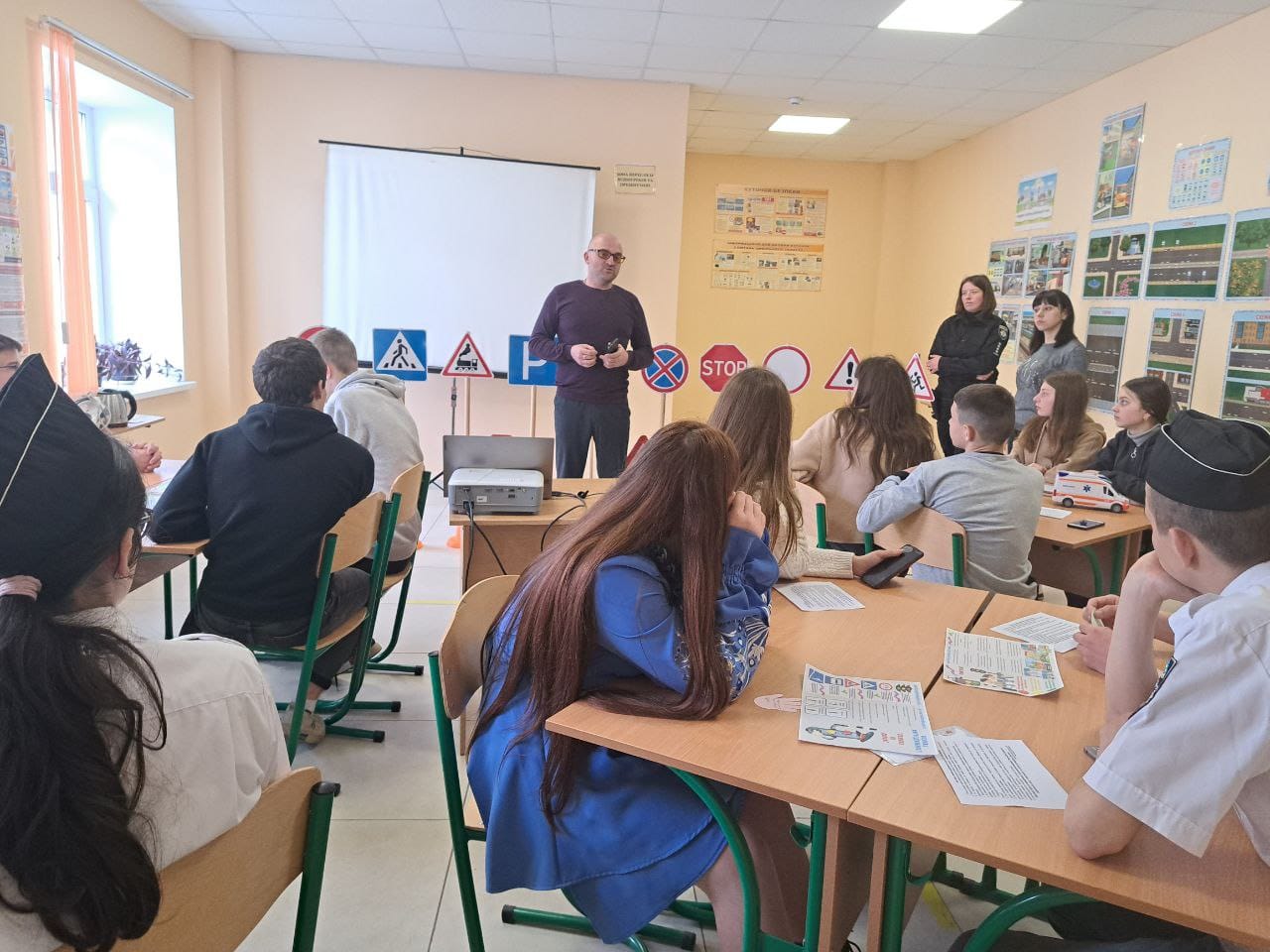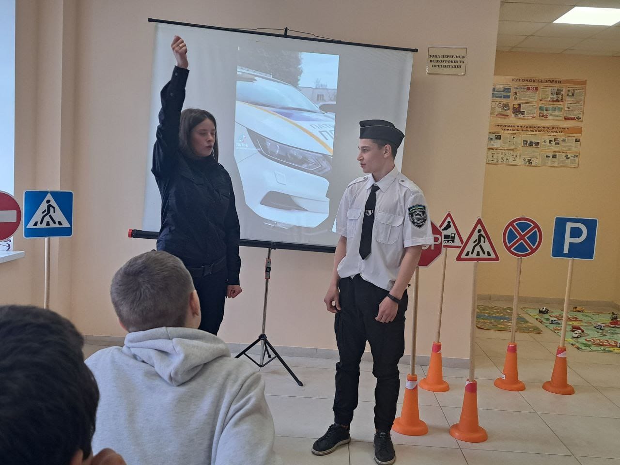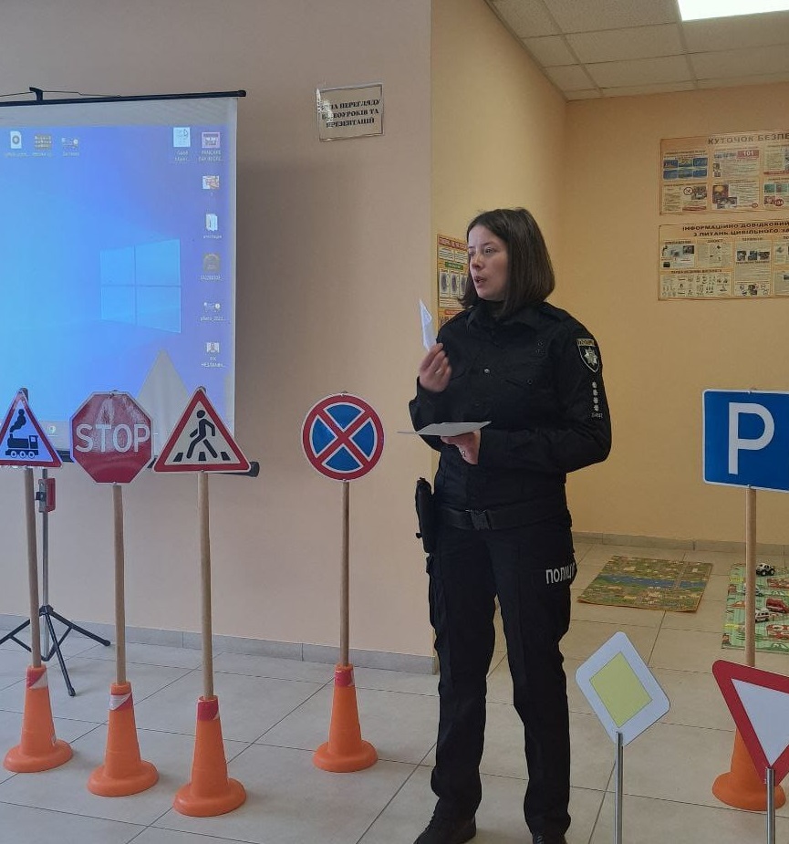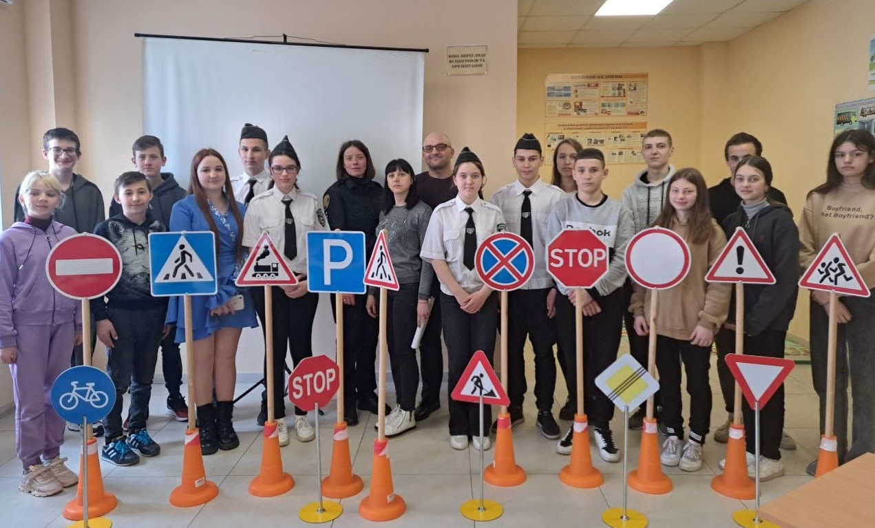 Спочатку ліцеїсти переглянули навчальну кінострічку, герої якої нагадали їм правила для пішоходів та велосипедистів. Потім ювенальна поліцейська Надія Деордиця та двоє її помічників розповіли дітям про дорожні знаки і обов’язки пішоходів у зоні дії цих знаків. Учнів навчили розрізняти попереджувальні знаки від забороняючих і наказових, також вони повторювали знаки пріоритету, сервісу та інформаційно-вказівні, згадали, що означають жести регулювальника, і як поводитися при наближенні спецавтомобілів із включеним проблисковим маячком червоного або синього кольору та спеціальним звуковим сигналом.