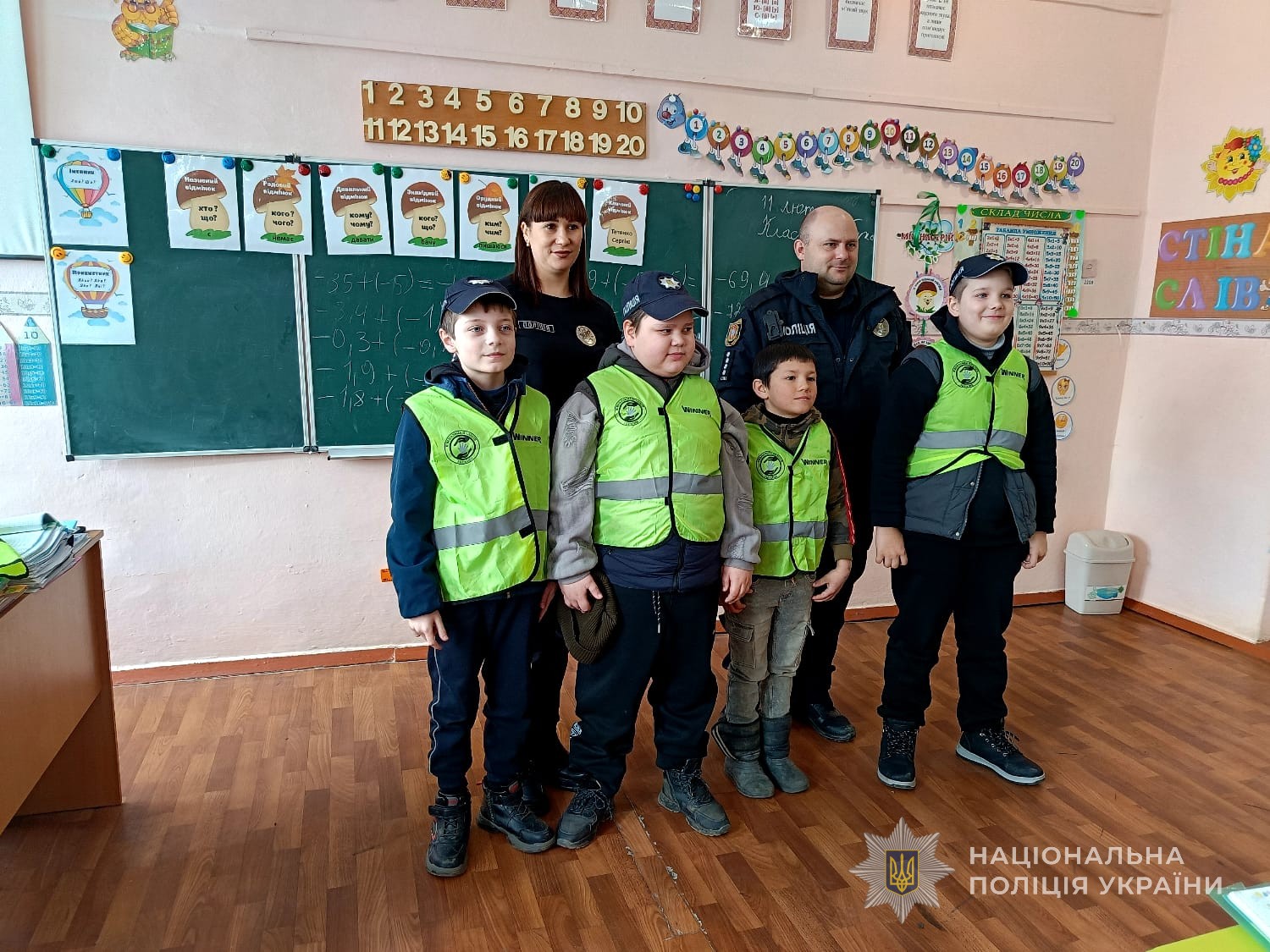 Поліцейські порушили й тему правил дорожнього руху. Пояснили дітям, як безпечно поводитися у громадському та шкільному транспорті, правильно переходити проїжджу частину, зробити себе помітним у темну пору доби за допомогою світловідбивних елементів.