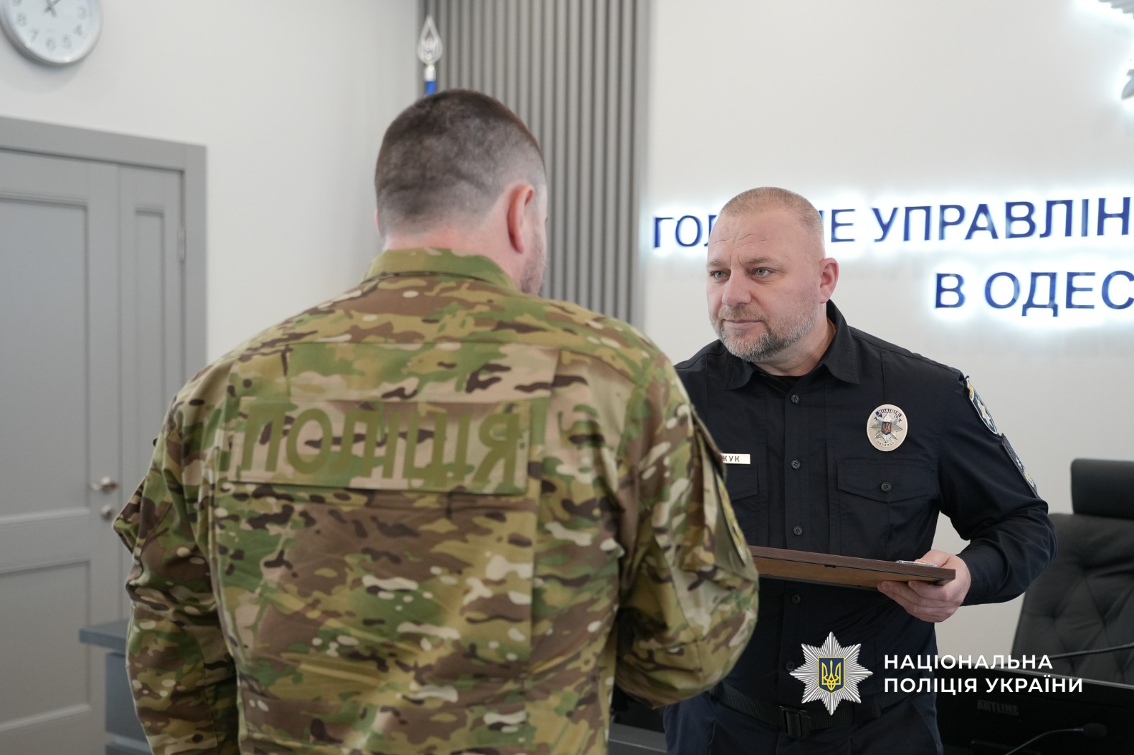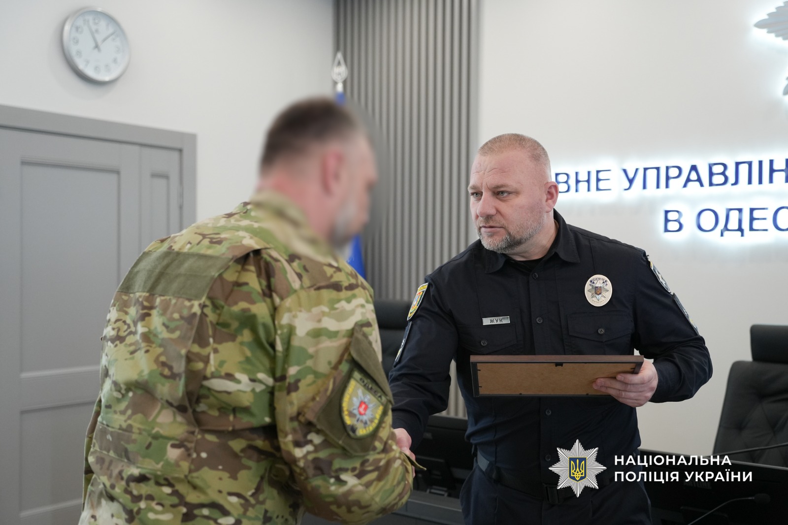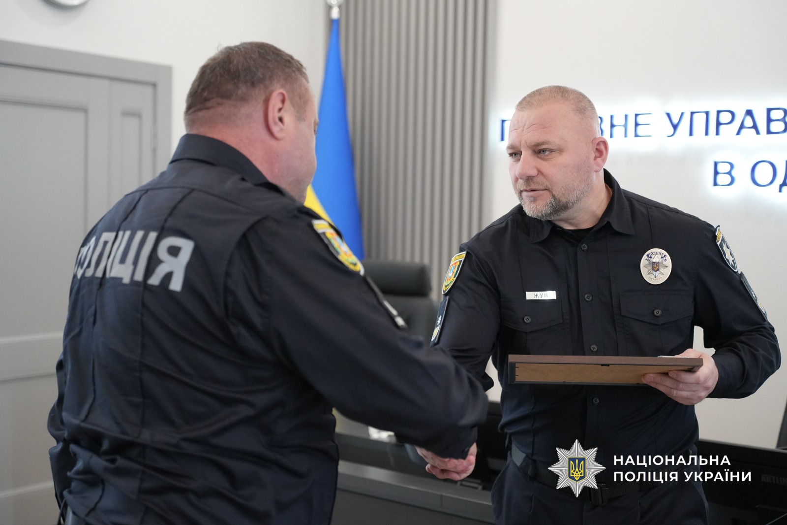 Наприкінці заходу бійці звернулися до очільника поліції Одещини з проханням підписати бойовий прапор, який був разом із ними на передовій.