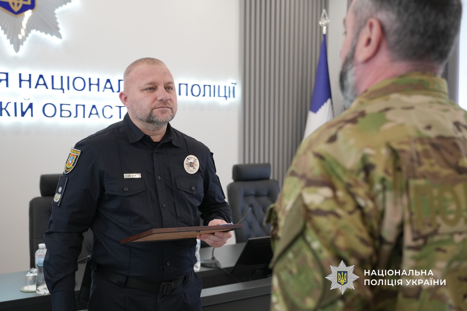 «Сьогодні хочу подякувати кожному і кожній, хто несе службу в тилу, і тим, хто мужньо тримає оборону на передовій. Ці нагороди – заслужене визнання вашої відваги, витримки та вірності Присязі. Ви не лише поліцейські, ви – воїни, які стали на захист держави у найскладніший для неї час. Ваша служба поруч із Силами оборони вкотре доводить: ми єдині й незламні перед ворогом. Дякую вам за професіоналізм і відданість. Бажаю кожному повертатися з бойових завдань живими та неушкодженими. Слава Україні!», - звернувся до колег на початку зустрічі генерал поліції третього рангу Іван Жук.