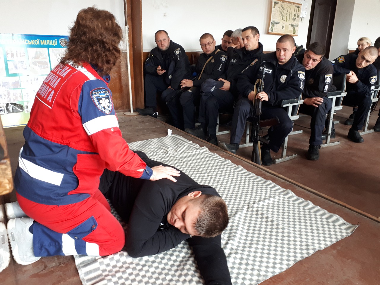 Як зазначила медпрацівниця, медичні валізи, які є в кожному службовому автомобілі, дозволять врятувати життя громадянам при зупинці дихання, кровотечах, переохолодженнях тощо. Враховуючи, що на території України точаться бойові дії, поліцейські відпрацювали дії в екстремальних умовах, що допоможуть врятувати життя людям з різними пораненнями. Зокрема, методи зупинки кровотечі, накладення пов'язок і шин, проведення штучного дихання. Крім того, фельдшерка поділилася власним досвідом, як у польових умовах, без медичних засобів, допомогти постраждалим, заспокоїти їх і не втратити самоконтроль.