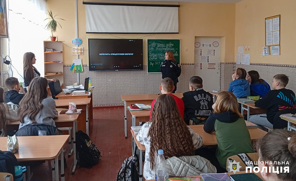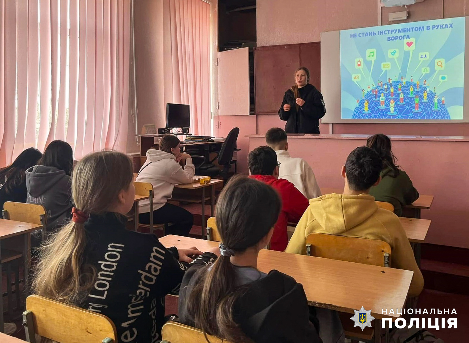 А от поліцейський офіцер громади Іван Гловак та ювенальна поліцейська Тетяна Тиндюк закликали учнів бути розбірливими під час спілкування в соціальних мережах, не піддаватися на привабливі пропозиції надіслати відверті фото або виконати якесь завдання за гроші.