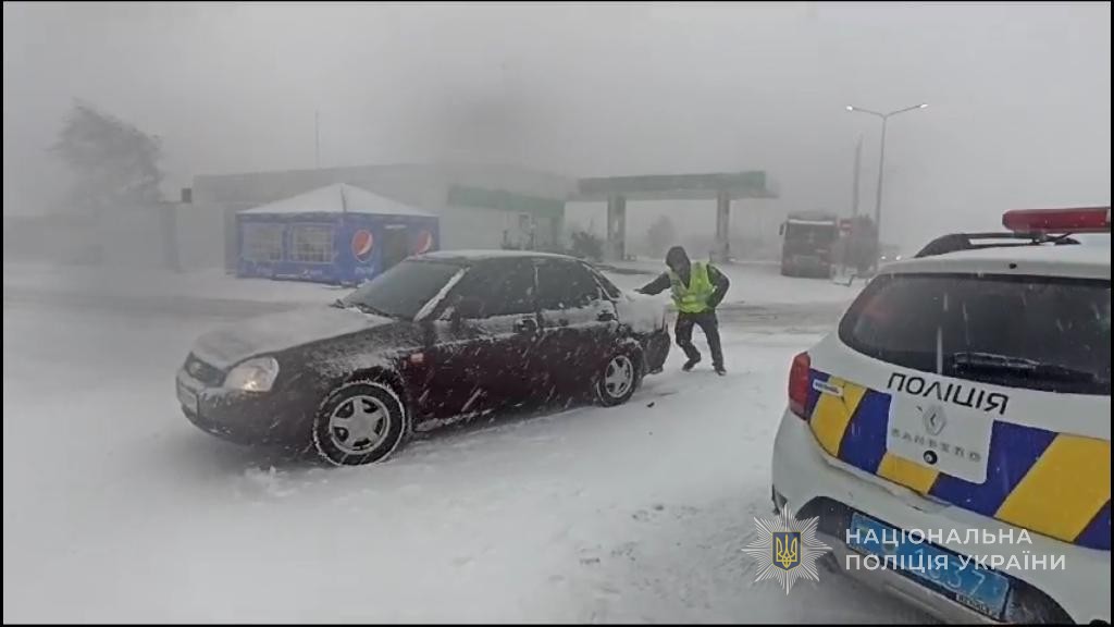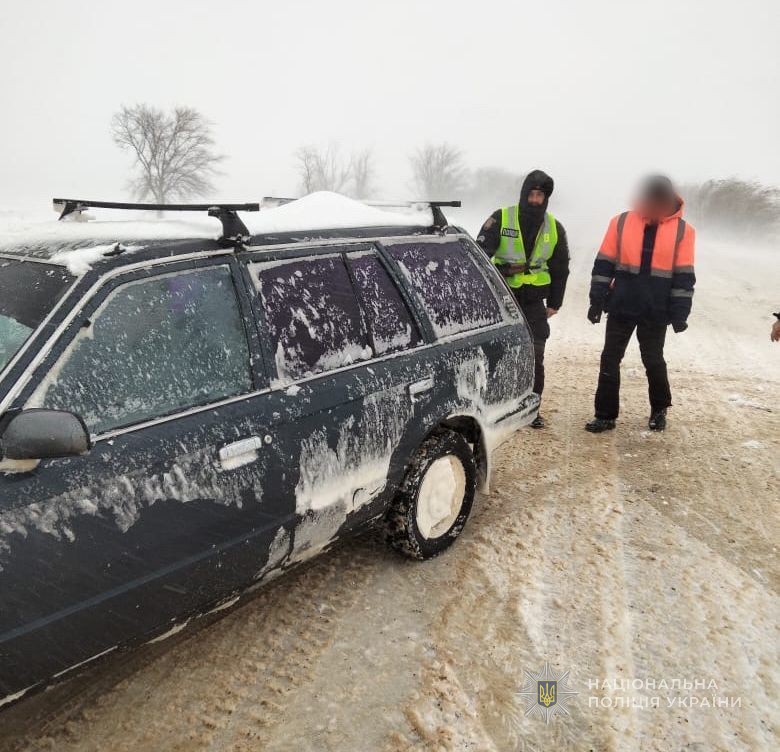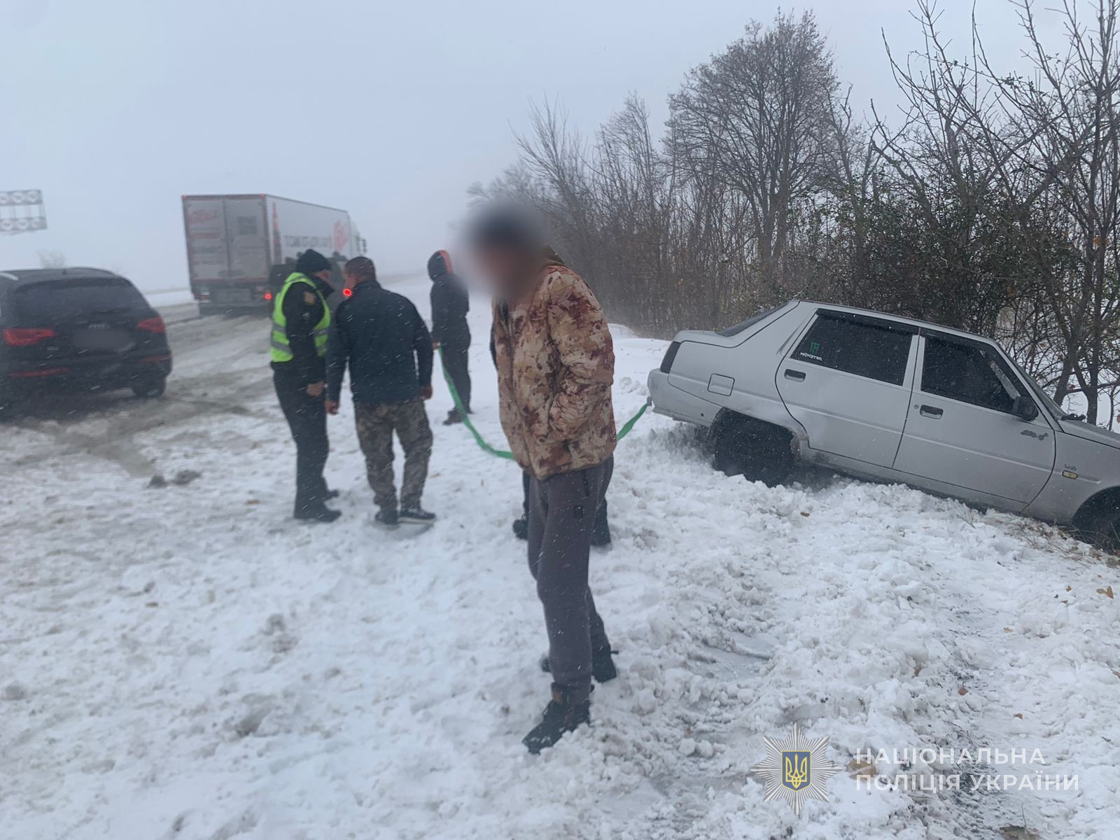 Поліцейські Одещини продовжують надавати допомогу автомобілістам, які вирушили у дорогу в негоду