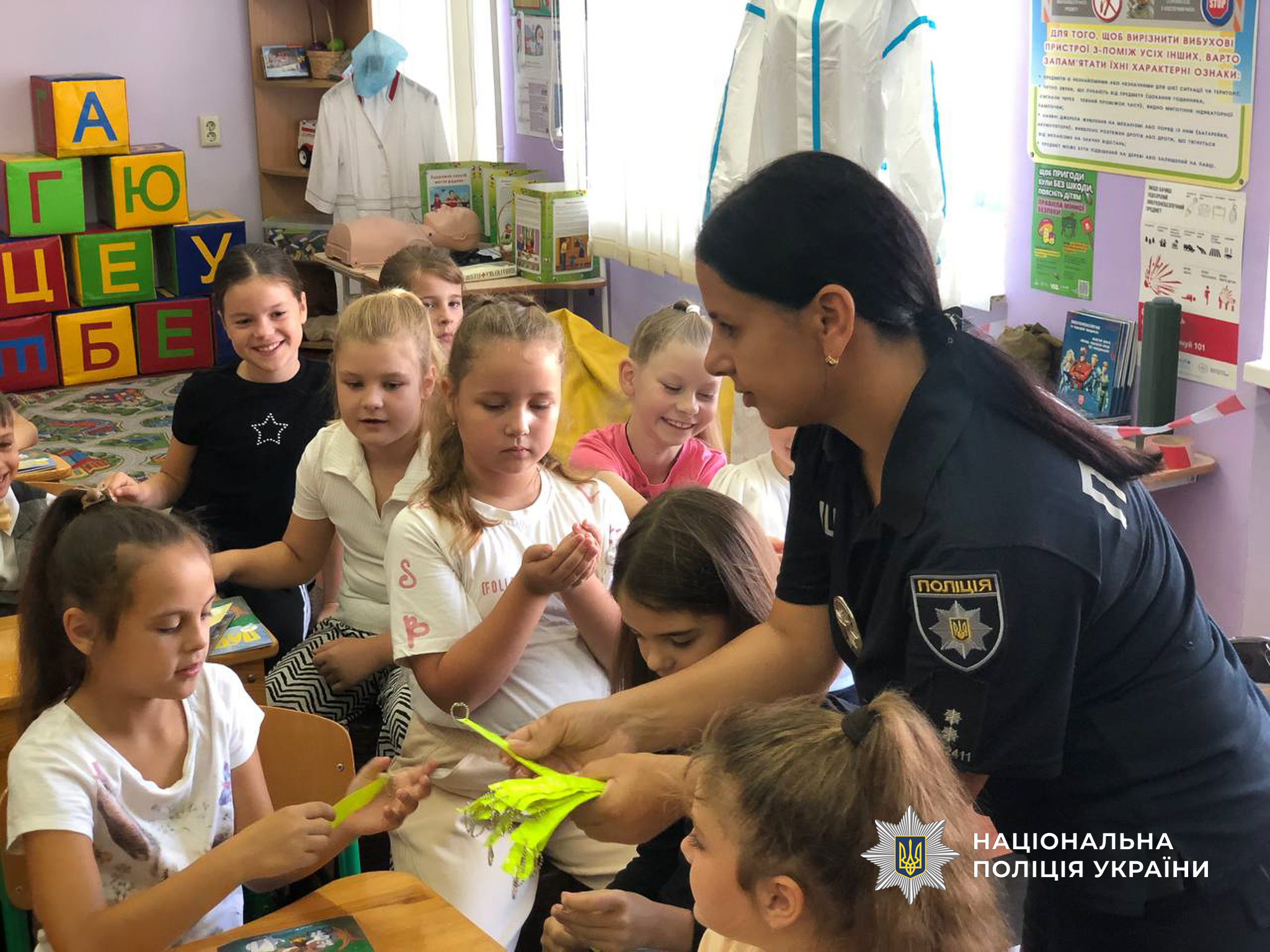 Правоохоронці наголосили на основних правилах дорожнього руху. Зокрема, діти пригадали, як правильно переходити проїжджу частину та поводитися поруч із транспортом, чому не можна вибігати на дорогу, навіщо користуватися світловідбивачами у темну пору доби й де краще їх закріплювати на одязі та речах. Також говорили про правила для велосипедистів і користувачів громадського транспорту.