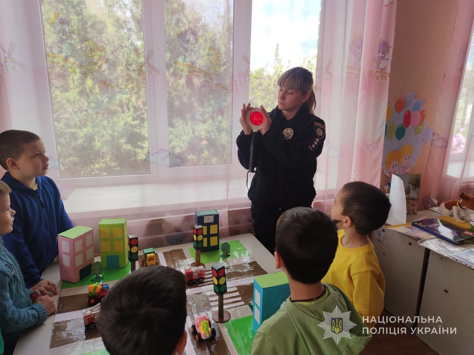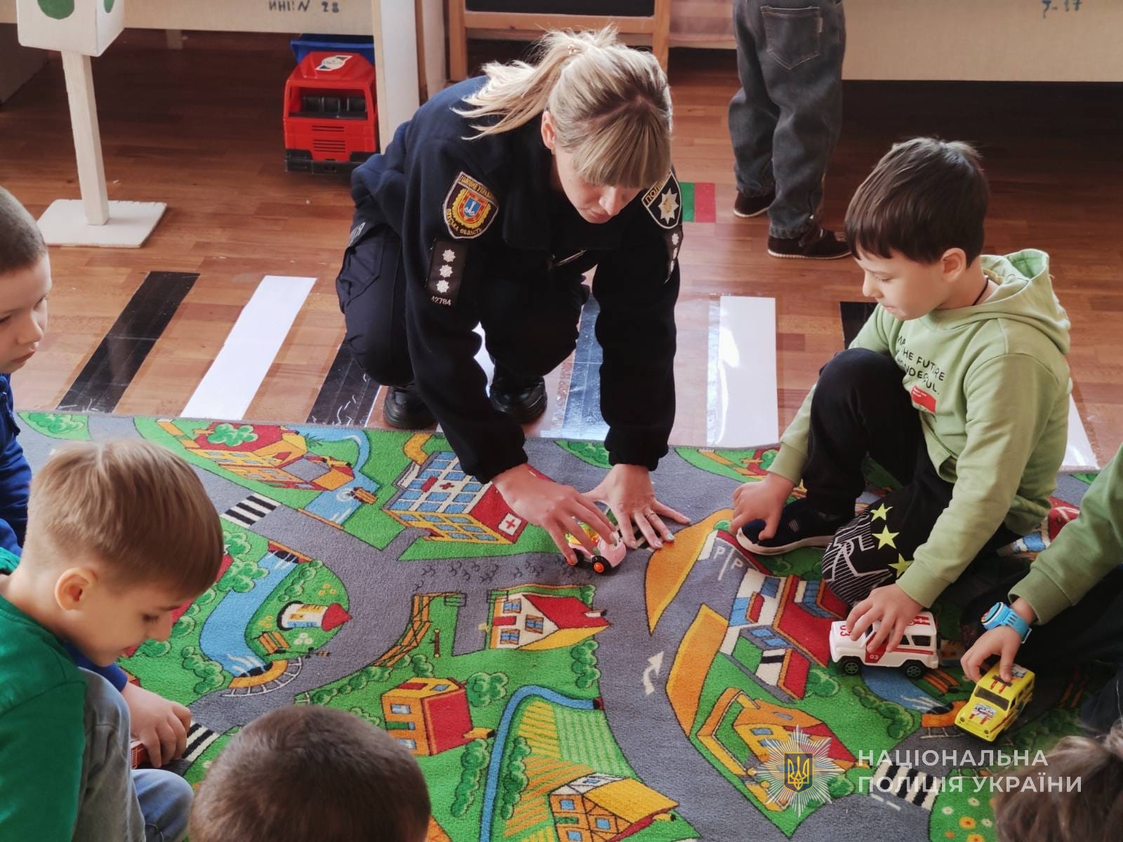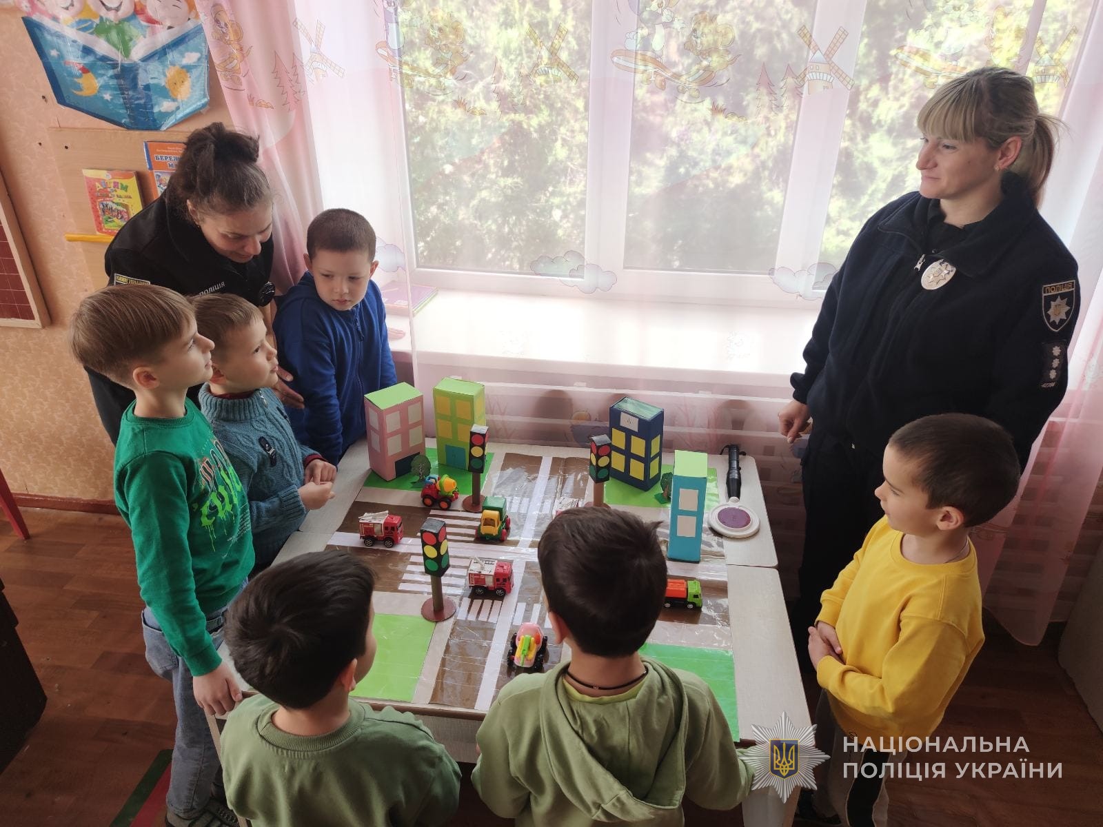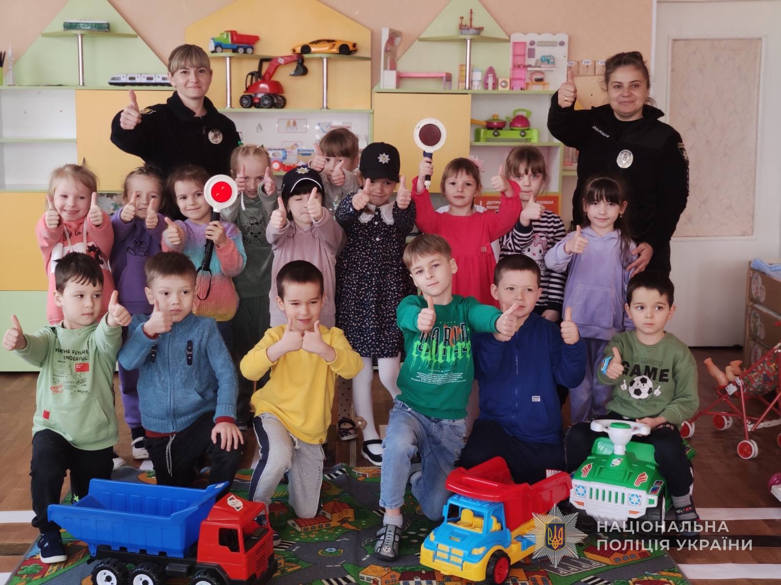 Ще один візит поліцейські зробили до одного із закладів дошкільної освіти в місті Подільськ. Ювенали Ольга Чебан та Ліна Огороднюк відповідали на питання маленьких «чомучок». Зокрема, діток цікавило, чому світлофор трикольоровий, а його червоне світло забороняє рух, чому потрібно переходити дорогу пішохідним переходом, чому на велосипеді повинні бути катафоти, а в темний час доби слід носити на одязі світловідбиваючі елементи, чому не можна в навушниках переходити дорогу.