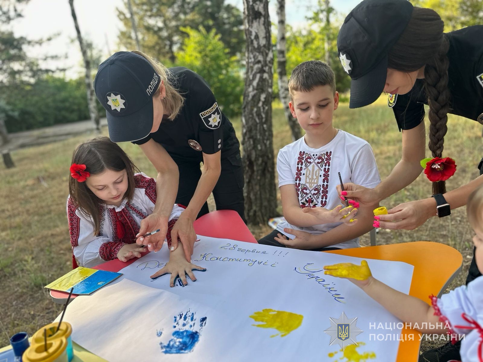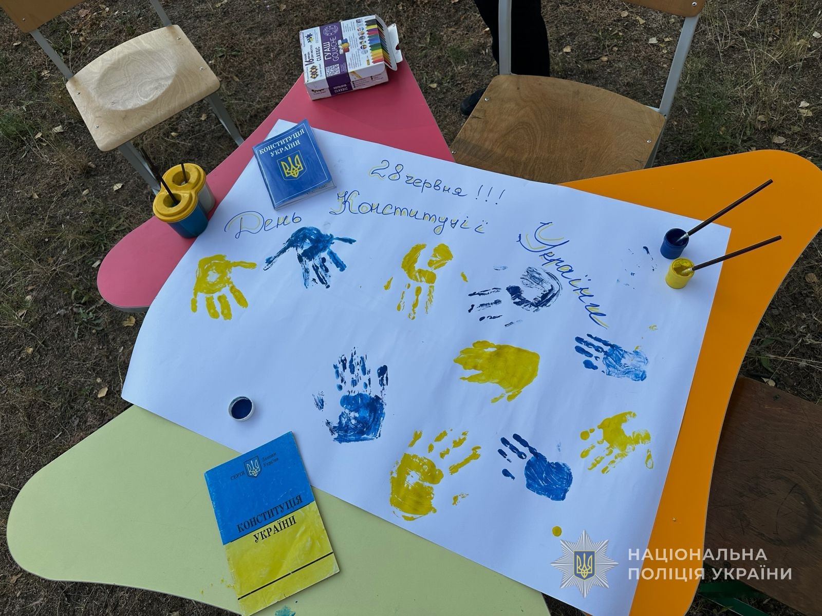З нагоди важливої дати ювенальні поліцейські, інспектори Служби освітньої безпеки та з дотримання прав людини, поліцейські офіцери громад відвідали садочки, гуртки, пришкільні табори, заклади соціального захисту та громадські місця, де поспілкувалися з молоддю про права людини, значення державної символіки та роль Основного Закону в житті громадян.