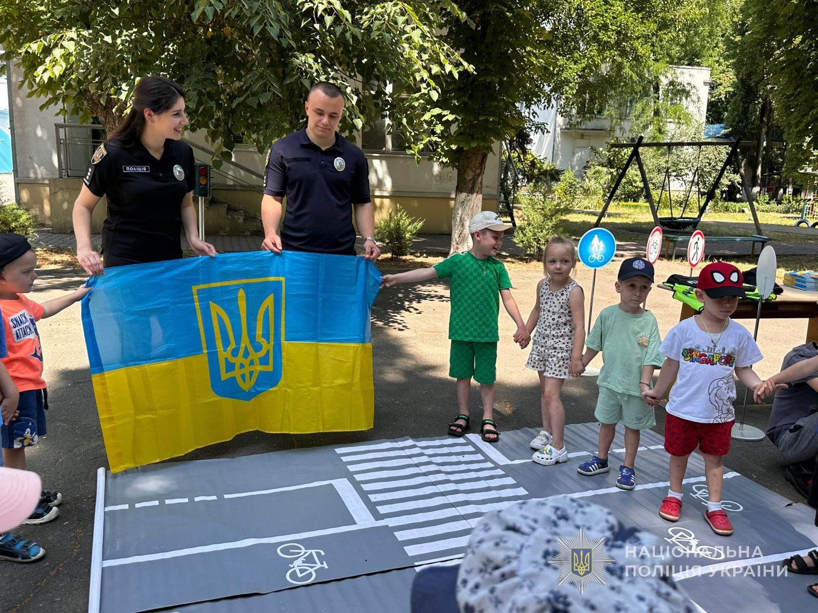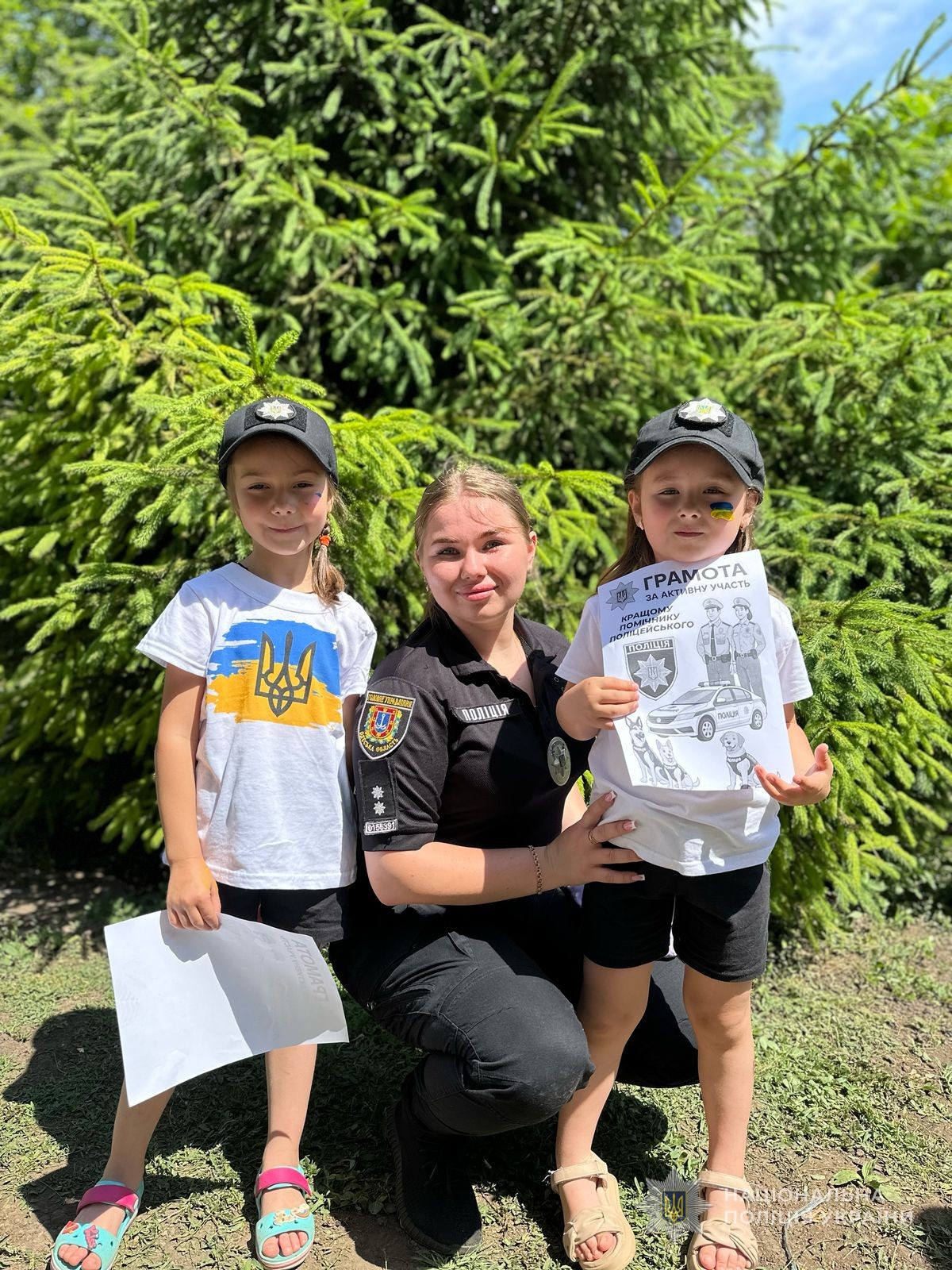Діти активно долучалися до тематичних виставок, вікторин, творчих конкурсів і спортивних естафет. Вони створювали патріотичні плакати, малювали на асфальті, ділилися думками щодо своїх прав та запитували поліцейських про те, що було незрозуміло.