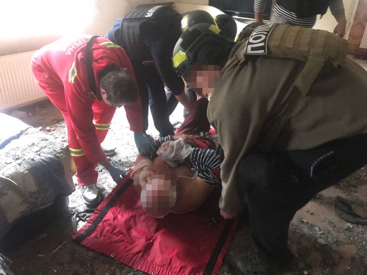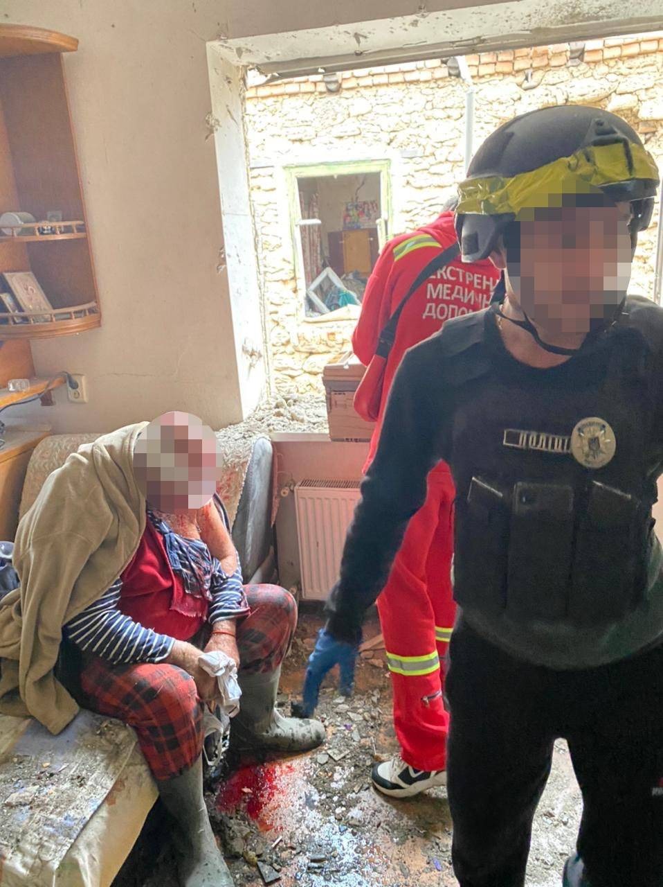 В одному будинку поліцейські виявили 64-річного чоловіка, який не встиг сховатися в укриття. Він отримав чисельні осколкові поранення тіла та обличчя, найбільше було уражене плече. Правоохоронці надали постраждалому першу домедичну допомогу та викликали «швидку». Поки чекали на медиків, намагалися запобігти переохолодженню чоловіка, підбадьорювали його розмовами.