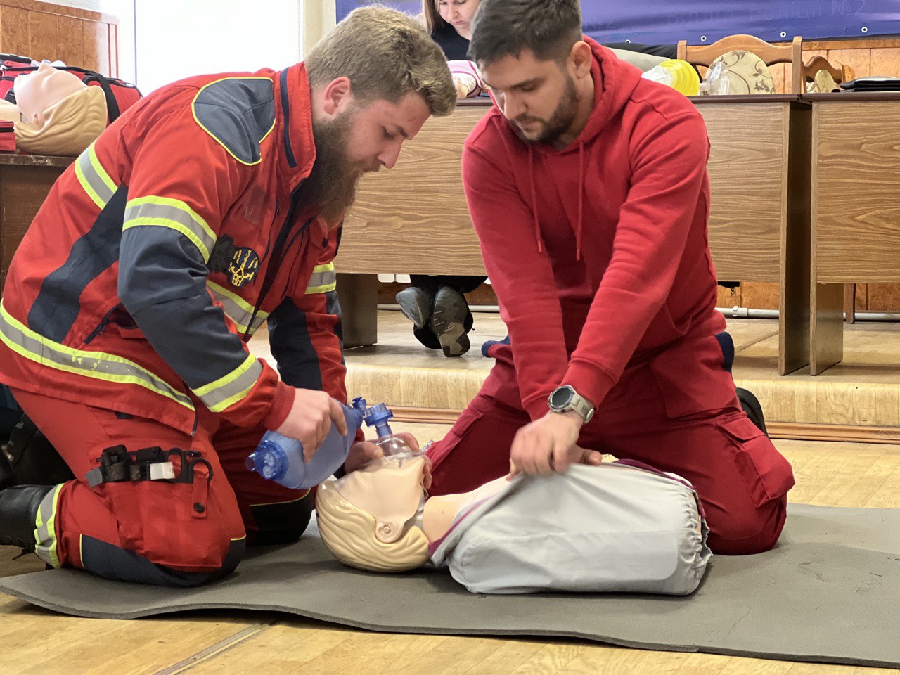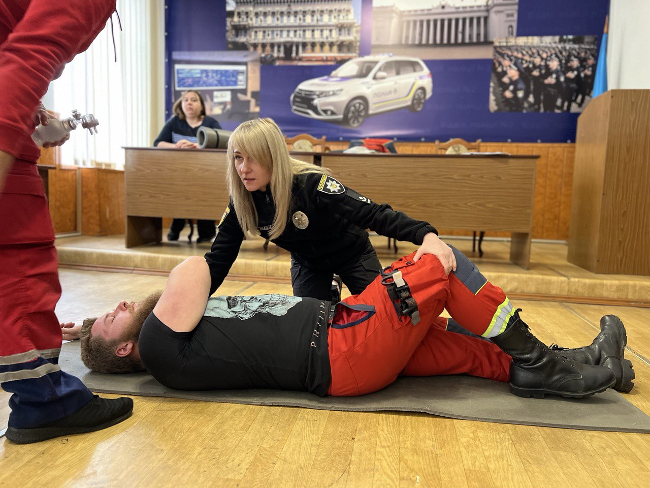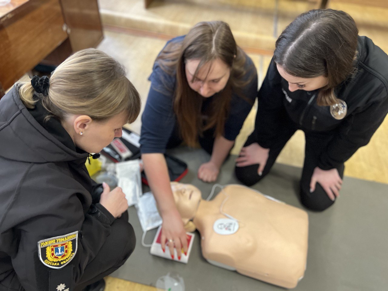 Разом із фахівцями поліцейські відпрацювали уніфікований протокол надання першочергової невідкладної медичної допомоги дорослим та дітям. Зокрема правоохоронці провели серцево-легеневу реанімацію, у тому числі з використанням автоматичного зовнішнього дефібрилятора, а також попрактикувалися у звільненні дихальних шляхів від сторонніх предметів.
