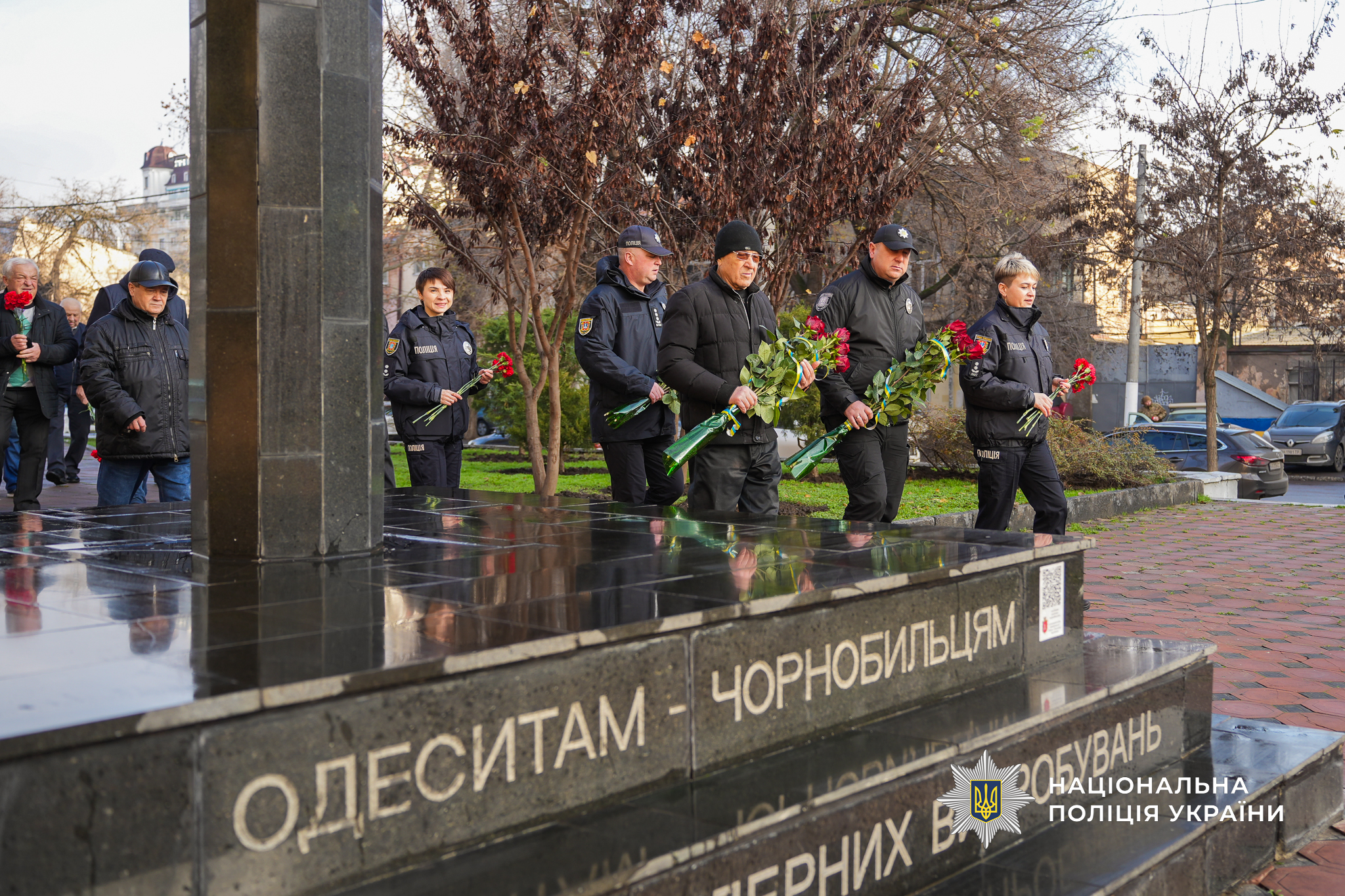 «Наш обов’язок – пам’ятати про тих, хто, ризикуючи життям, виконував свій службовий і людський обов’язок. Їхня мужність є прикладом для нас і сьогодні, коли Україна знову бореться за життя», - наголосив заступник начальника Головного управління Національної поліції в Одеській області полковник поліції Олександр Мірошниченко під час покладання квітів до пам’ятника ліквідаторам аварії на Чорнобильській атомній електростанції на проспекті Українських Героїв в Одесі.