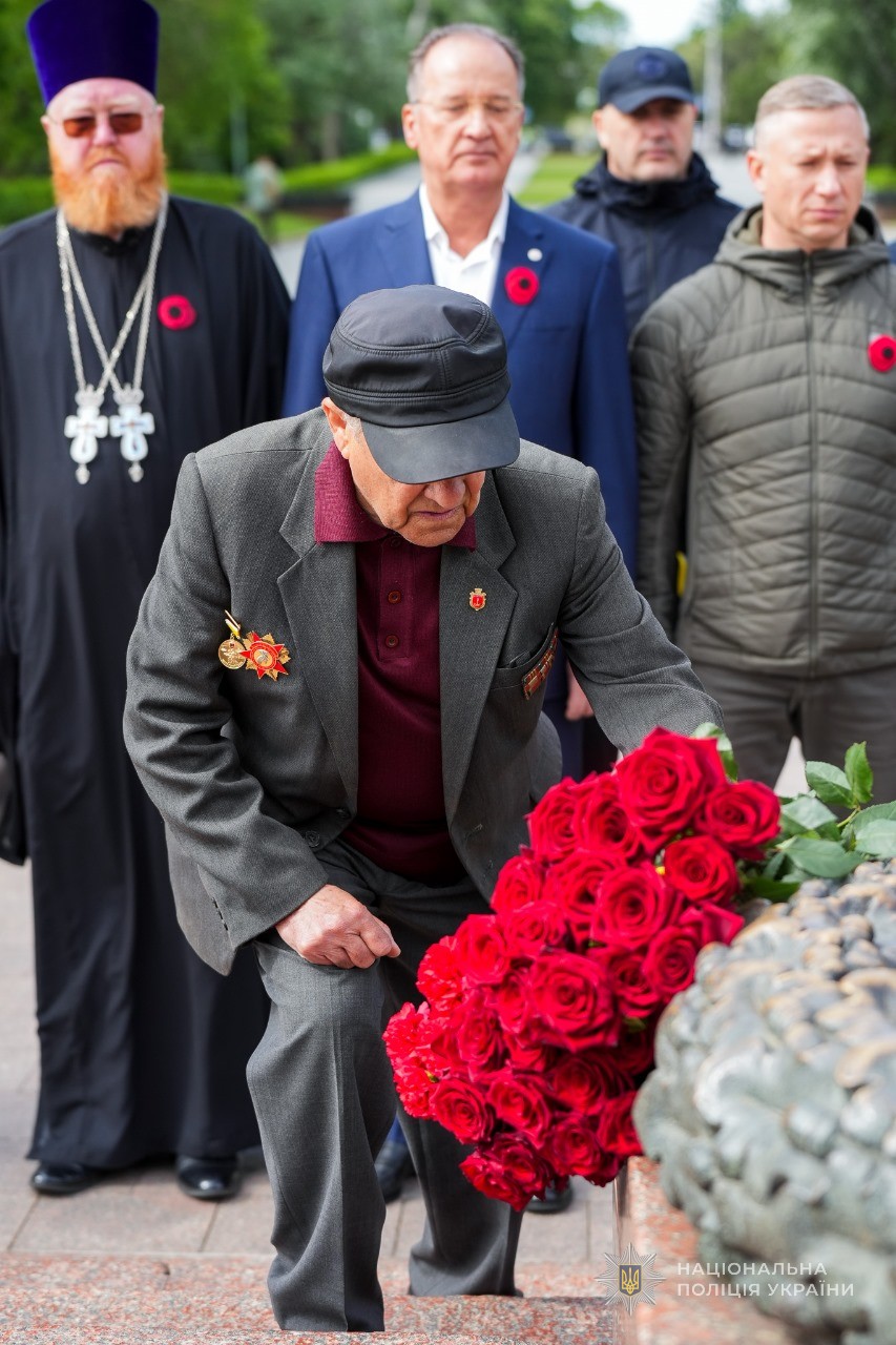 В Одесі на Алеї Слави біля пам'ятника Невідомому матросу відбувся мітинг-реквієм. Разом з містянами, священнослужителями, військовослужбовцями, рятувальниками, представниками влади, громадських організацій, долучився до заходу і заступник начальника обласної поліції Денис Захарченко.