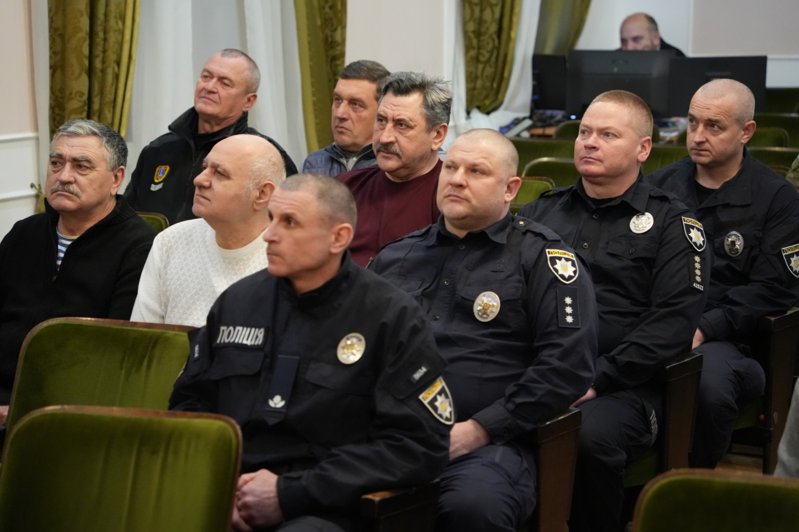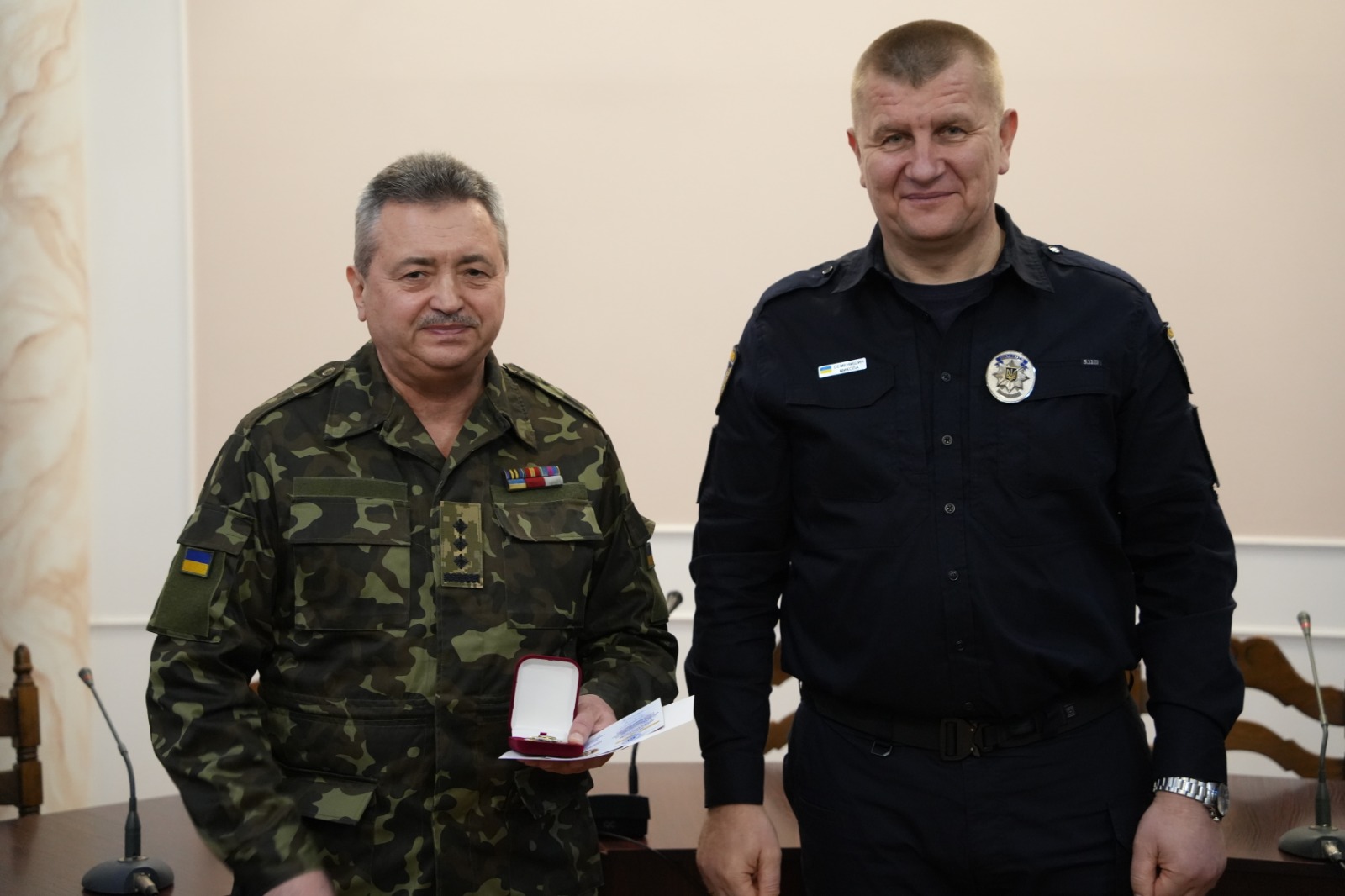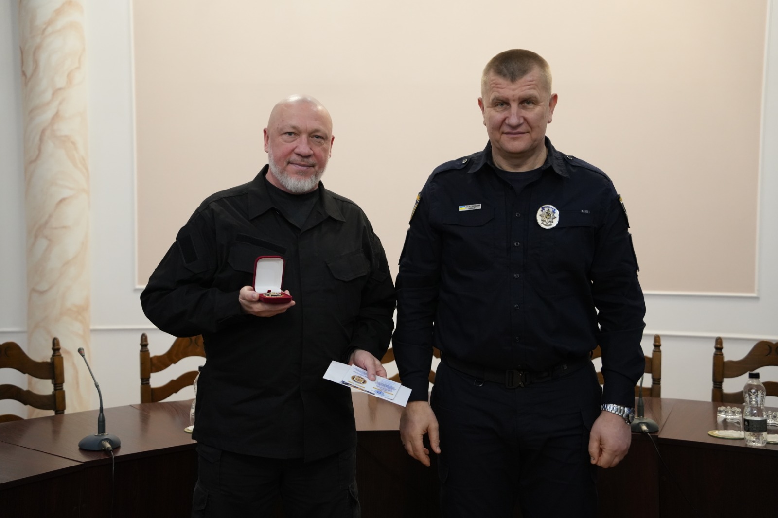 Продовжилися урочистості в залі колегії, де керівник поліції Микола Семенишин вручив ветеранам нагрудні знаки пошани, подякував за вірність присязі і побажав міцного здоров’я, довгих років життя та великої Перемоги. Правоохоронців, які вже покинули нас, присутні вшанували хвилиною мовчання.