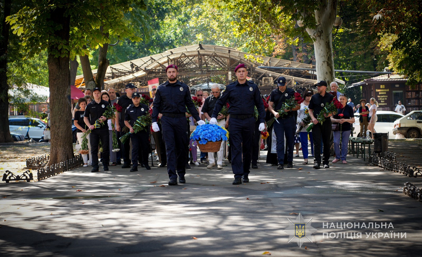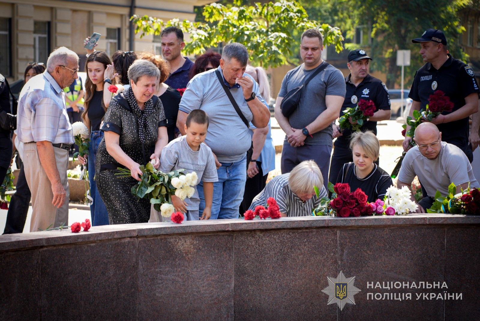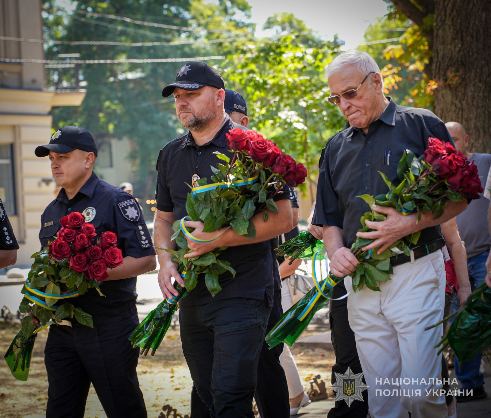 Тут зібралися рідні загиблих, колеги, ветерани. Начальник поліції Одещини генерал поліції третього рангу Іван Жук звернувся до присутніх з промовою: