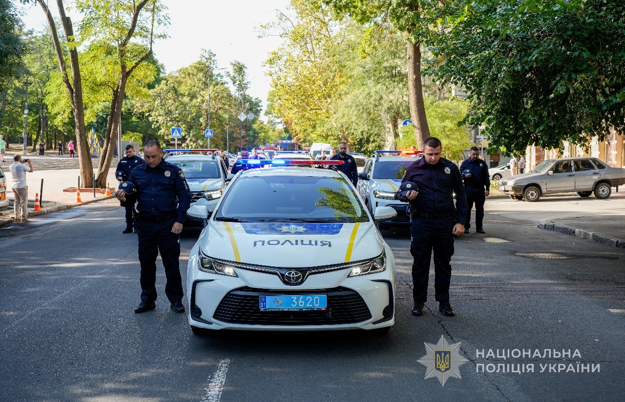 В Одесі ранок розпочався з акції «Служба. Захист. Пам’ять». Колона службових автомобілів підрозділів МВС проїхала містом, символізуючи щоденну роботу тих, хто забезпечує боротьбу зі злочинністю, захист кордону, допомогу в надзвичайних ситуаціях. Рівно о 9:00 автівки зупинилися, і правоохоронці вийшли, щоб хвилиною мовчання вшанувати колег, які не повернулися зі служби.