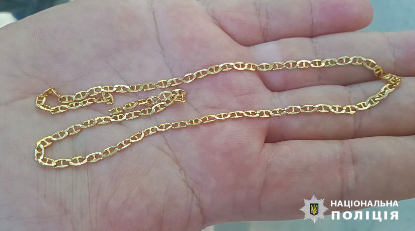 Подія сталася вчора вдень на вулиці Іцхака Рабіна. Помітивши перехожого похилого віку із золотим ланцюжком з хрестиком та кулоном на шиї, зловмисник підійшов до дідуся, несподівано зірвав з нього прикраси і побіг геть. Своїми протиправними діями чоловік завдав потерпілому майновий збиток на суму 10000 гривень.