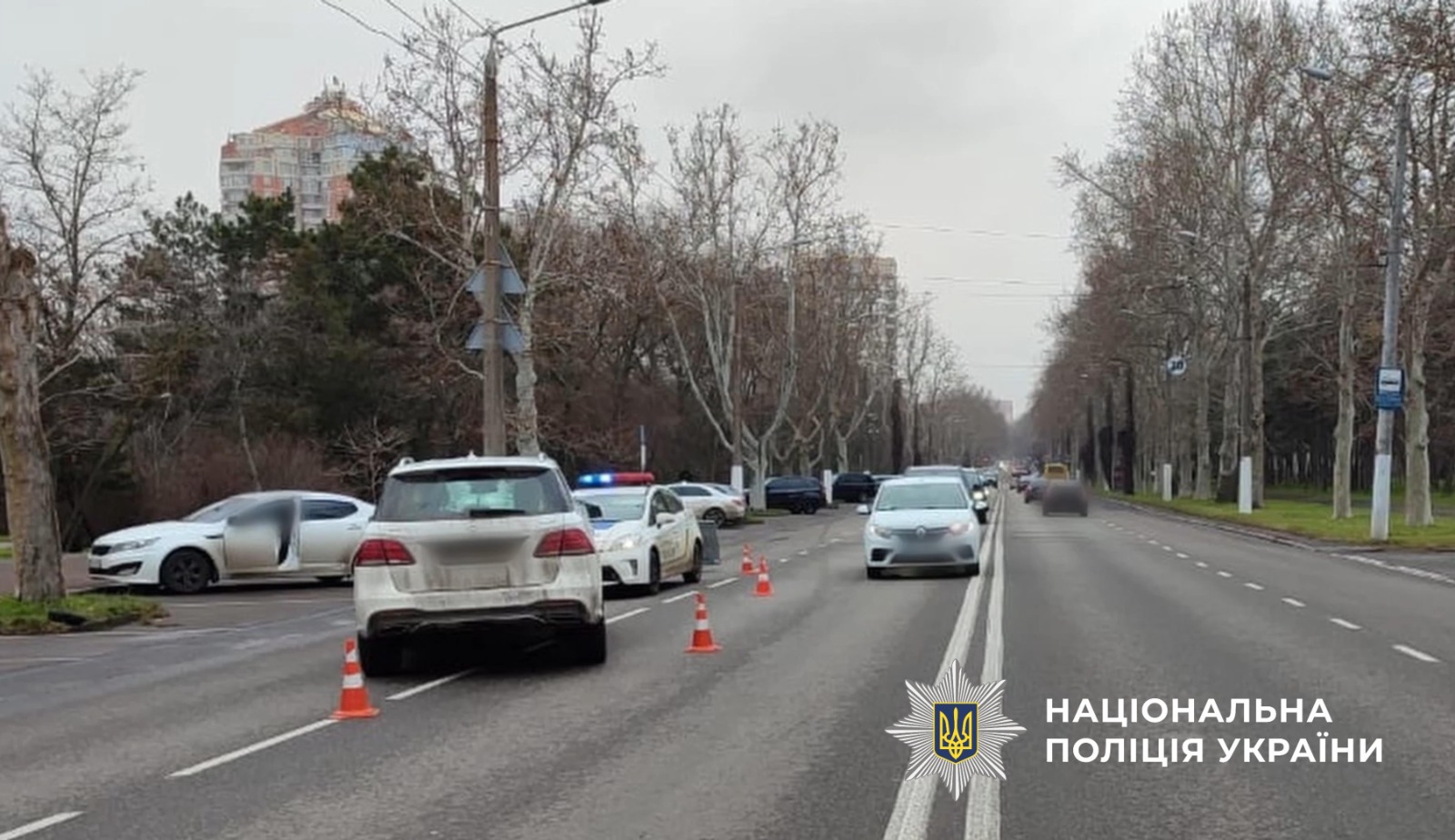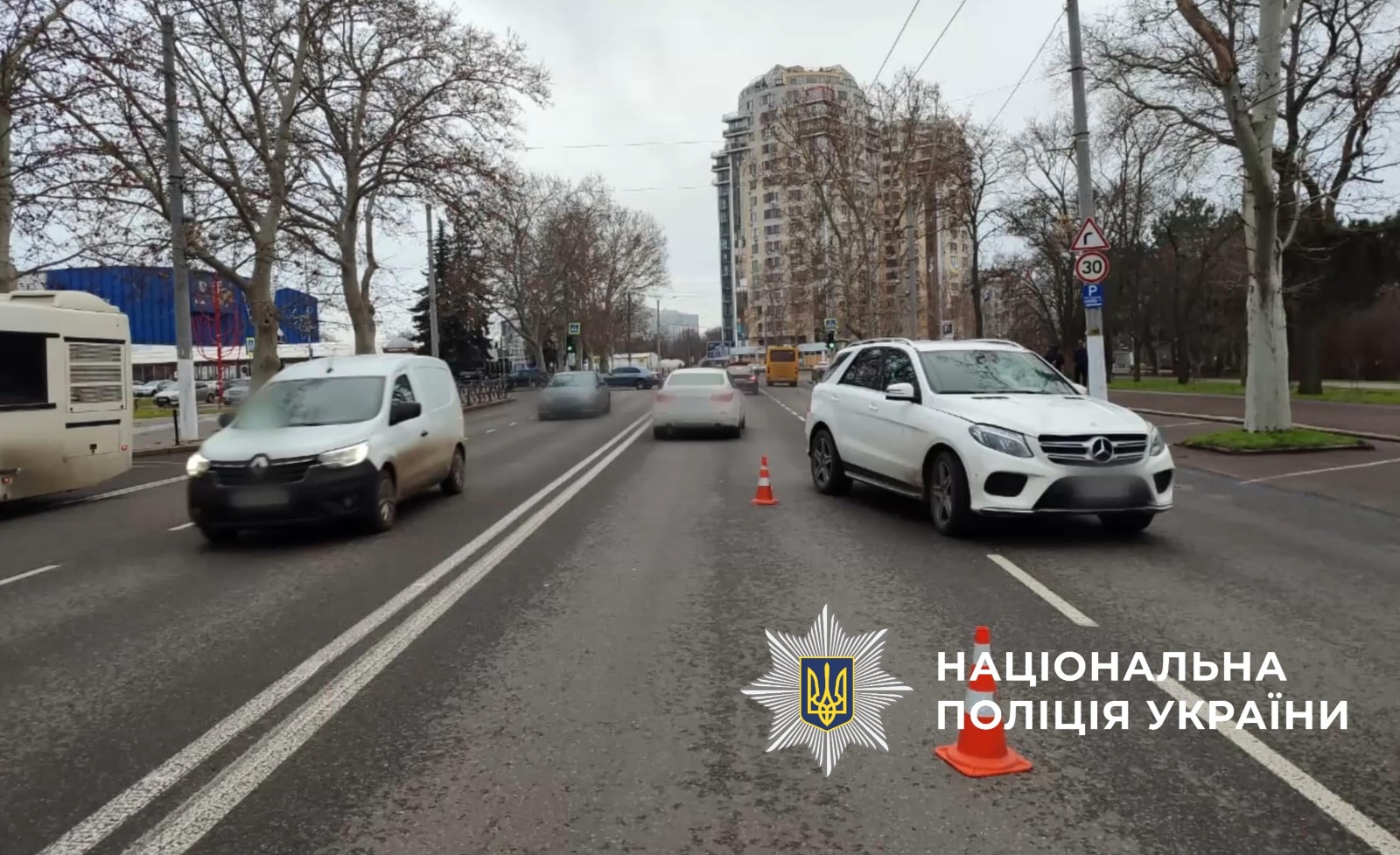 Поліцейські працюють на місці ДТП у Приморському районі Одеси, в якій постраждав пішохід