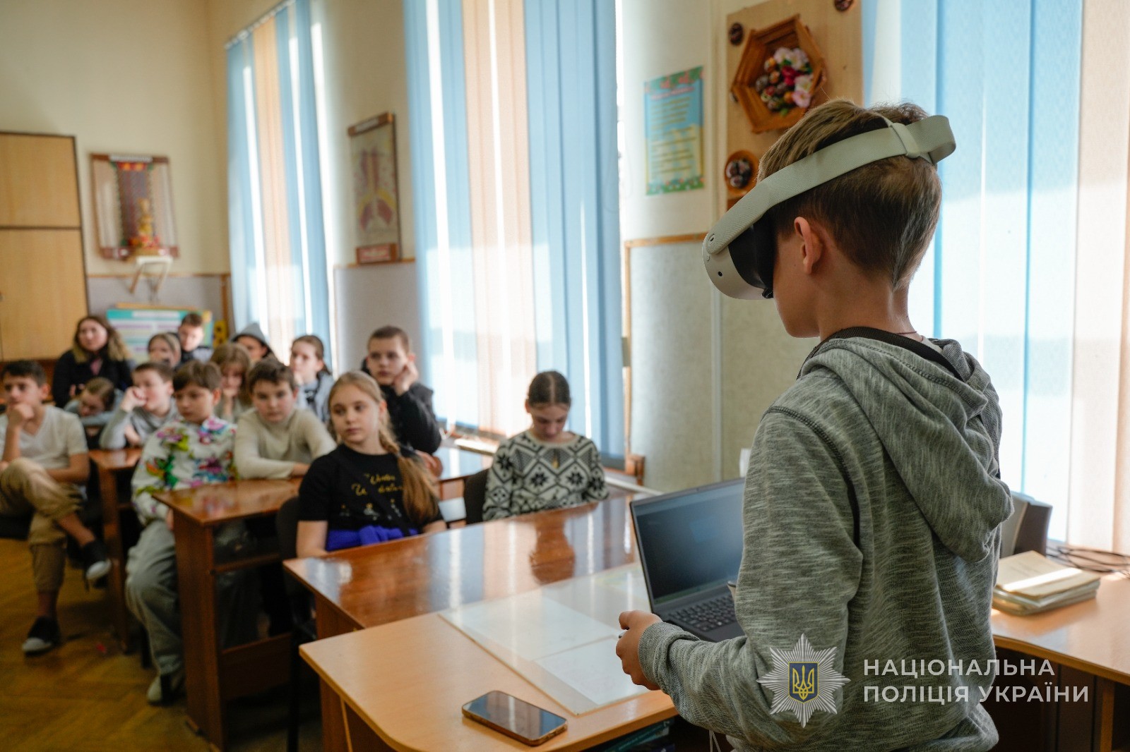 Як розповіла начальник відділу ювенальної превенції управління превентивної діяльності ГУНП в Одеській області Вікторія Чалова, ювенали використовували VR-окуляри для інтерактивних квестів. Учні гімназії спостерігали за віртуальними ситуаціями, наприклад, булінгом, і приймали рішення, як правильно допомогти та захистити того, кого ображають. Інші учні спостерігали за діями виконавців завдань на екрані, що перетворювало навчання на командну дискусію.