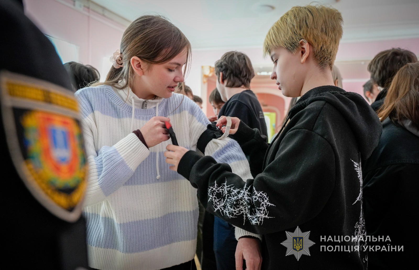 А із представниками відділу професійного навчання управління кадрового забезпечення поліції Одещини учні відпрацьовували практичні навички надання першої домедичної допомоги. Вчилися рятувати себе та товаришів у випадку поранення на вулиці чи вдома.