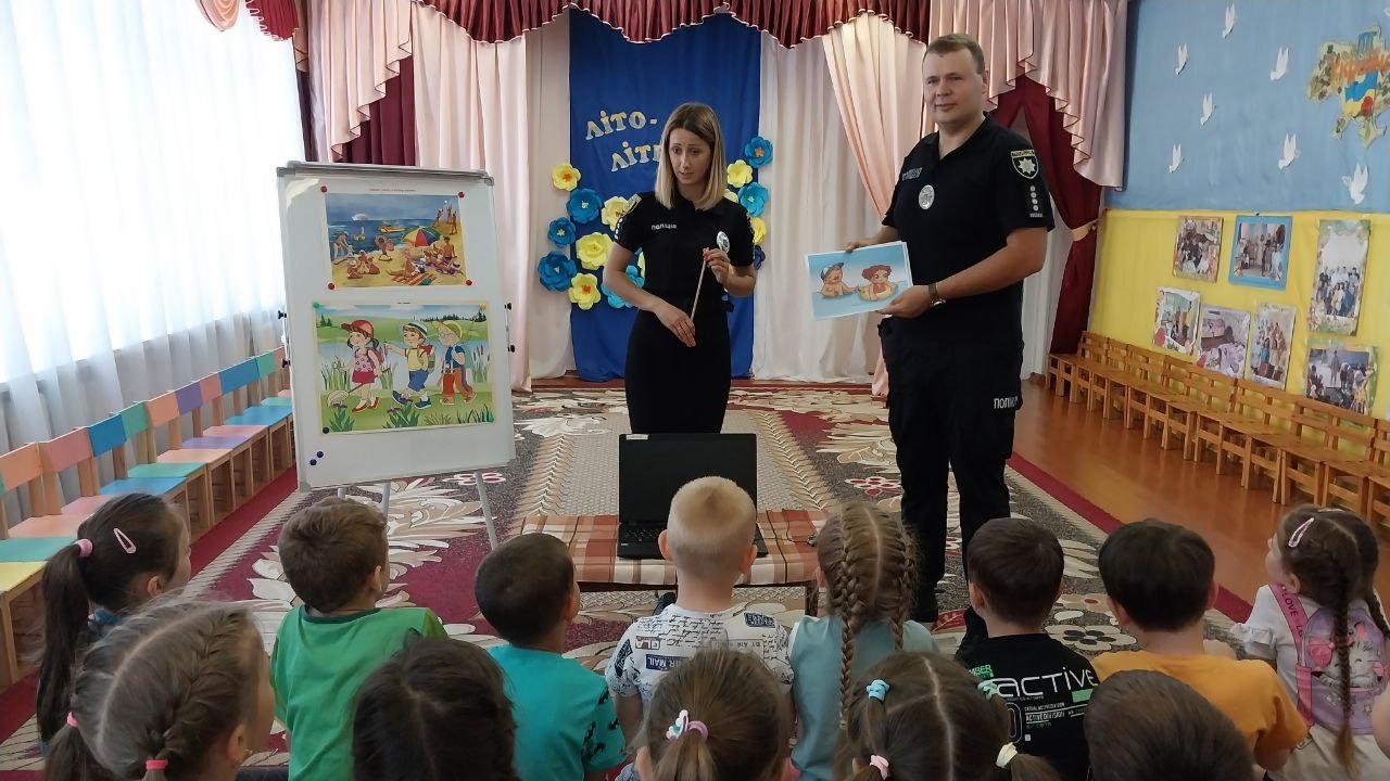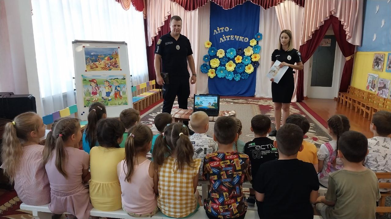 Поліцейські проводять з дошкільнятами уроки з безпеки життєдіяльності, аби вберегти їх від нещасних випадків під час літнього відпочинку