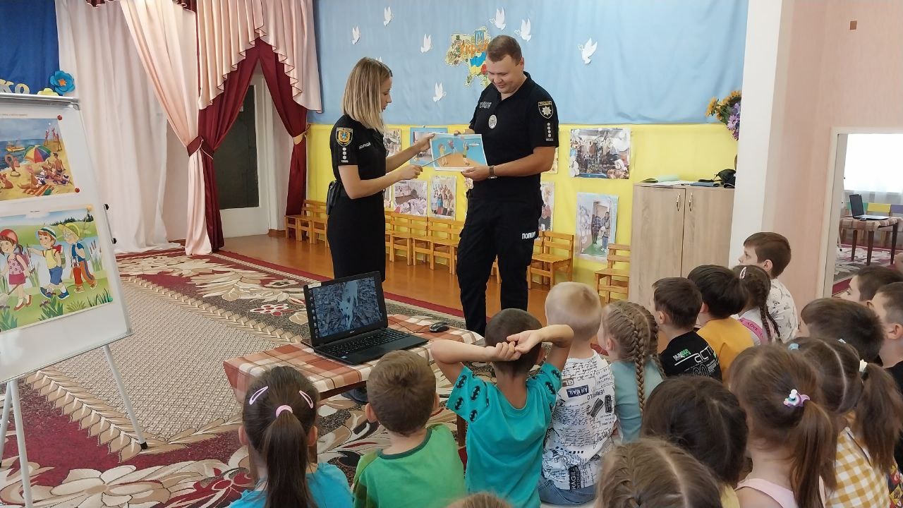 Правоохоронці завітали до дитячого садочка «Сонечко» у місті Подільськ і за допомогою яскравих картинок, плакатів та мультфільмів нагадали його вихованцям правила поводження на воді, дитячих майданчиках, у побуті та інших місцях.