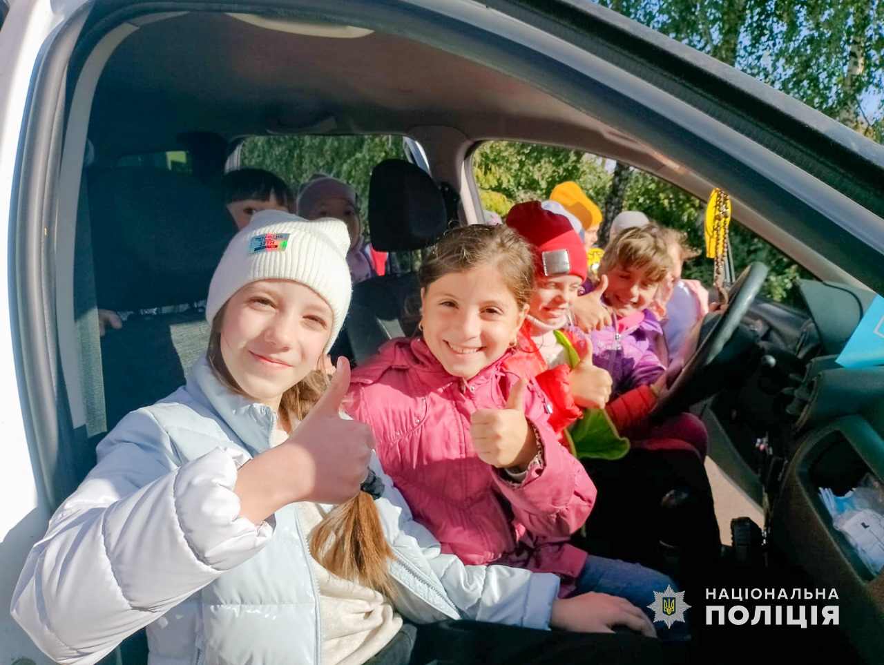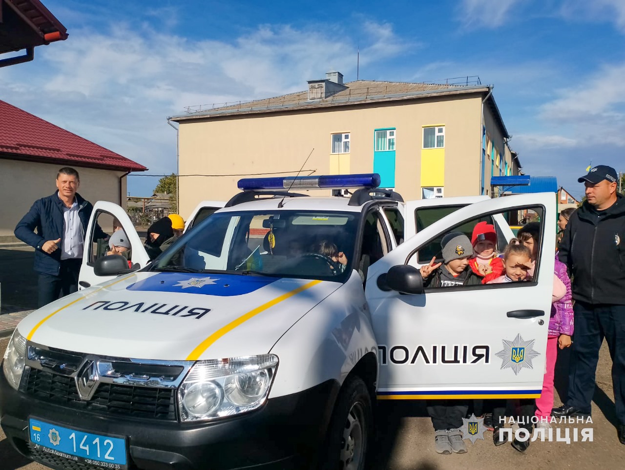 Поліцейські наприкінці зустрічі надали дітям можливість посидіти в салоні службового автомобіля, зробити оголошення через гучномовець, увімкнути сирену та зробити пам’ятні фото.