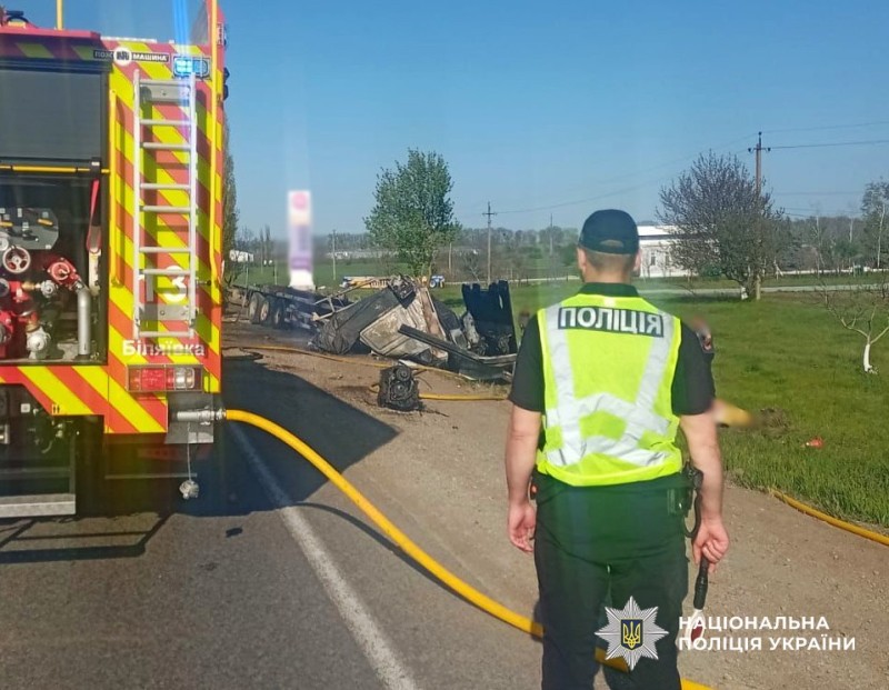 Як зазначив начальник відділу розслідування злочинів у сфері транспорту слідчого управління ГУНП в Одеській області Дмитро Слюта, попередньо встановлено, що 51-річний водій вантажівки «DAF» під час руху внаслідок поламки колеса не впорався з керуванням і виїхав на зустрічну смугу, де зіштовхнувся з вантажівкою «Renault» під керуванням 58-річного чоловіка. Унаслідок удару обидва транспортні засоби виїхали в кювет. Вантажівка «DAF» спалахнула, на жаль, її керманич загинув. Водія другої вантажівки з численними тілесними ушкодженнями каретою швидкої допомоги доставили до лікарні.