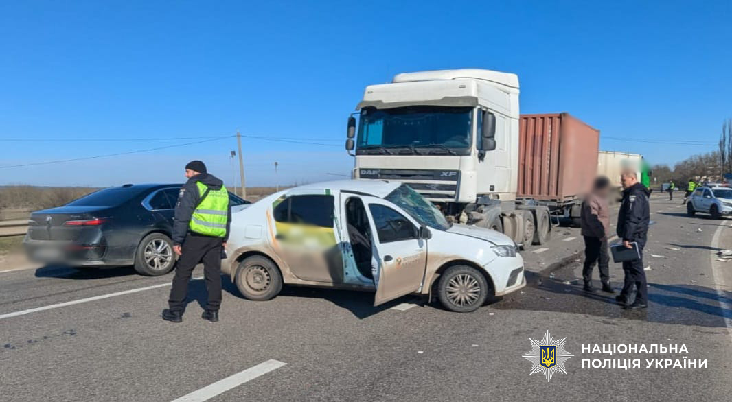 Поліцейські попередньо встановили, що 23-річний водій легковика «Renault» під час виїзду з другорядної дороги на головну не надав дорогу вантажівці «DAF» під керуванням 54-річного чоловіка, що мав перевагу в русі.