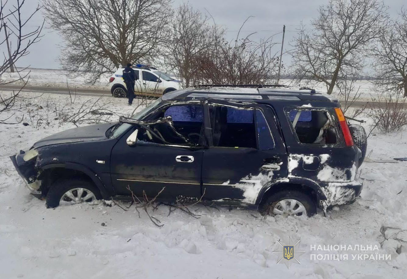 Попередньо правоохоронці встановили, що водій автомобіля «Honda» не впорався з керуванням, виїхав з дороги і допустив перекидання легковика.