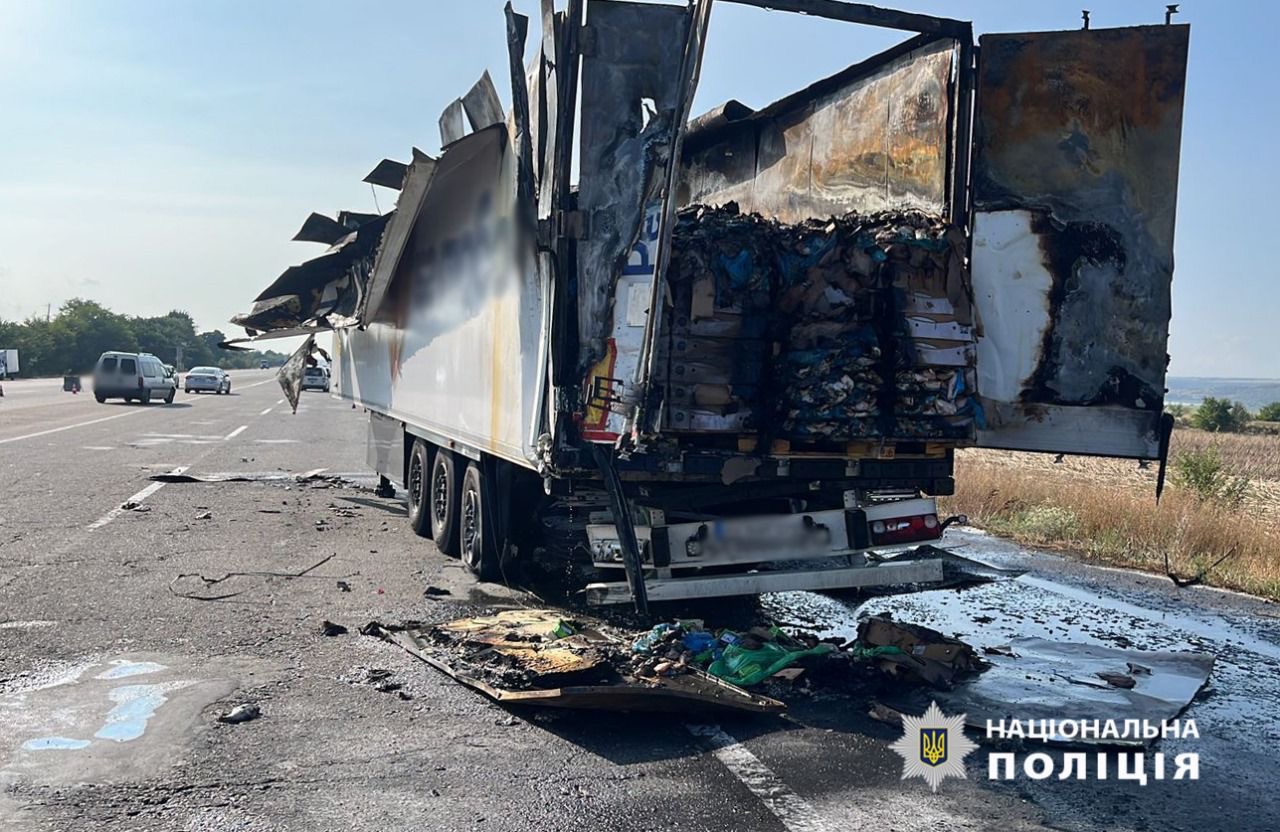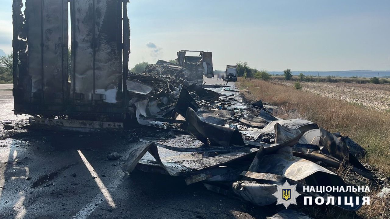 Поліцейські попередньо встановили, що 34-річний житель Вінниччини, керуючи вантажівкою «SCANIA», неуважно слідкував за дорожньою обстановкою і здійснив зіткнення з аналогічною вантажівкою, яку 59-річний земляк припаркував на правій смузі. Унаслідок зіткнення відбулось займання транспортних засобів.