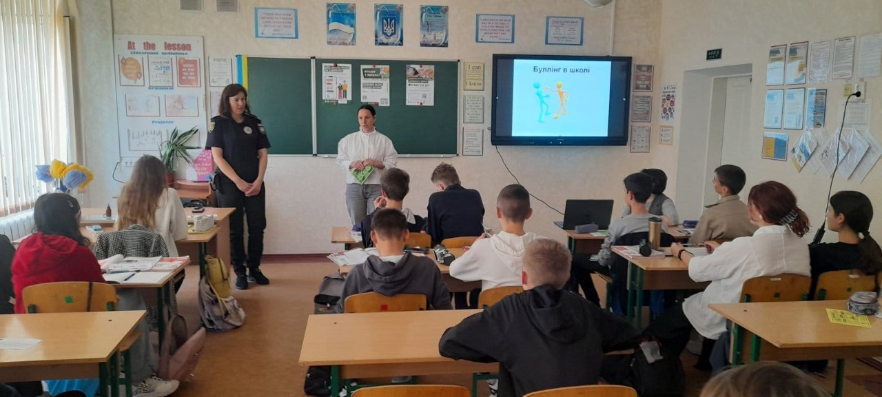 Ювенальна поліцейська та юристка з місцевого бюро правової допомоги обговорили з підлітками, які бувають різновиди булінгу та його причини, як будувати дружній колектив, в якому не буде умов для «появи» кривдника. Пояснили, як відрізнити цькування від звичайного конфлікту і що робити, якщо дитина починає потерпати від кібербулінгу в соцмережах.