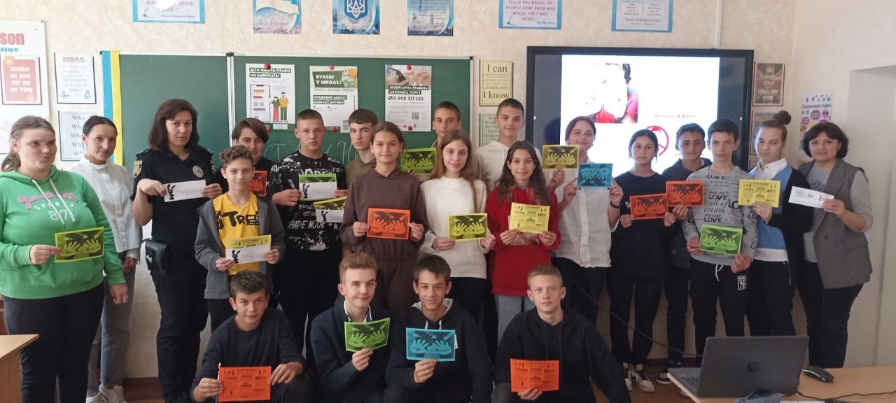 Наостанок гості роздали всім інформаційні буклети з корисними порадами та контактами гарячої лінії безоплатної правової допомоги (0 800 213 103) й національної дитячої «гарячої лінії» (116 111 або 0 800 500 225), де можна отримати підтримку та допомогу.