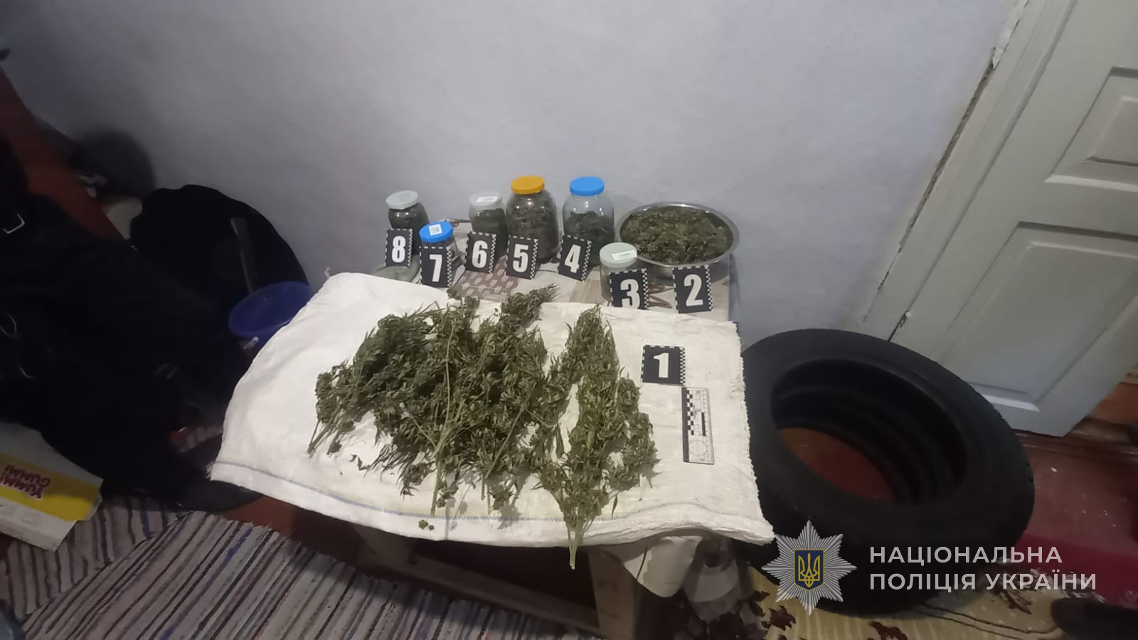 Загалом поліцейські вилучили понад чотири кілограми рослинної речовини та скерували її на експертне дослідження. За висновком експерта, вона належить до наркотичного засобу, обіг якого обмежено, – канабісу.