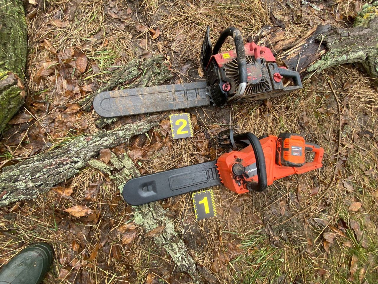 Слідчі вилучили у зловмисника знаряддя протиправної діяльності, а саме дві бензопили, вирубану деревину та автомобіль з причепом, на які, в рамках розпочатого кримінального провадження, наклали арешт.