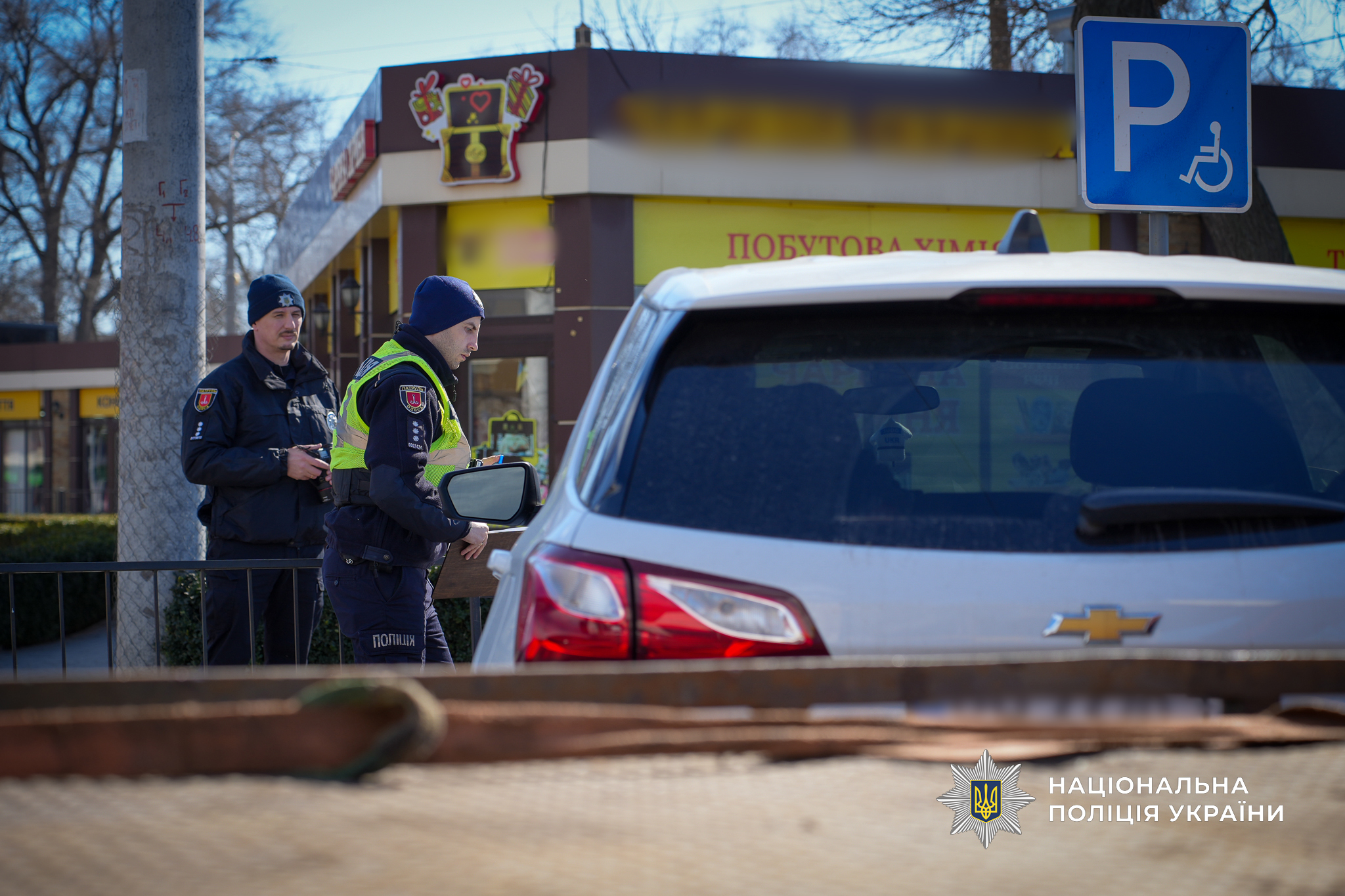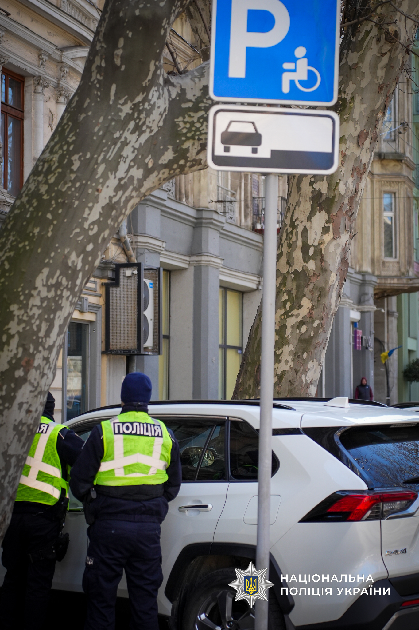 Поліцейські вкотре провели профілактичний рейд в Одесі, перевіривши дотримання водіями правил паркування на місцях, відведених для людей з інвалідністю