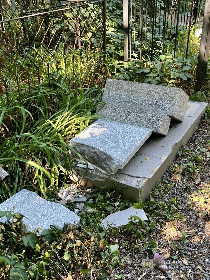 Сьогодні, 12 липня, вранці охоронець цвинтаря повідомив про руйнування надгробків.