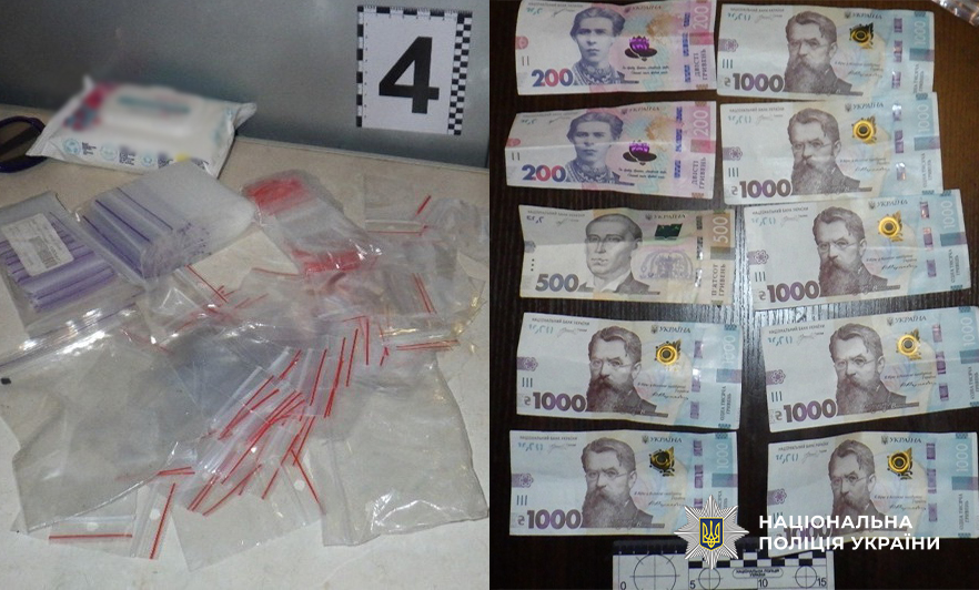 Поліцейські задокументували, як чоловік двічі збув одному і тому ж «клієнту» загалом чотири полімерні пакетики із кокаїном та амфетаміном, за що отримав одинадцять тисяч гривень.