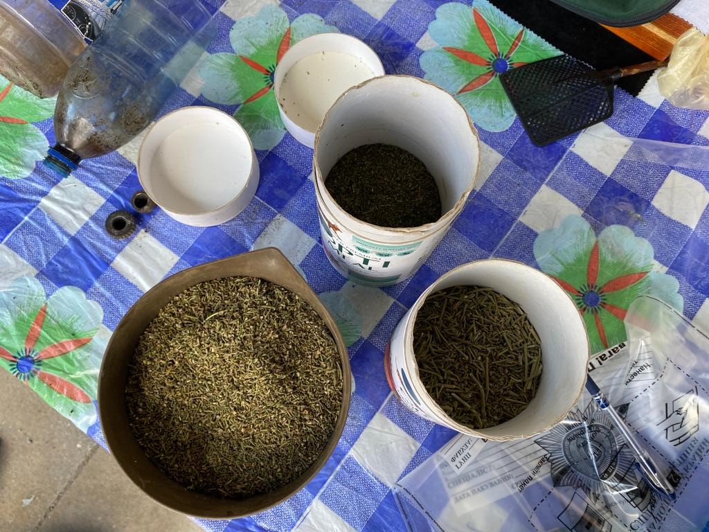 Під час санкціонованого обшуку у підсобному приміщенні домоволодіння чоловіка поліцейські виявили пакети та ємності з речовиною рослинного походження у подрібненому та висушеному стані, схожою на канабіс, та саморобний пристрій для його вживання із залишками наркотичного зілля. Загальна вага вилученої речовини склала близько 800 грамів.