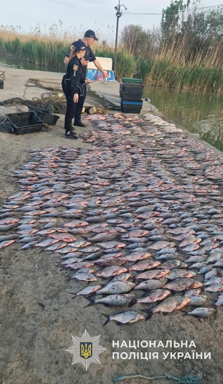 Викликана на місце події слідчо-оперативна група територіального підрозділу поліції вилучила у правопорушників в якості речових доказів знаряддя лову, плавзасоби та майже 800 одиниць риби, серед якої карась, сазан, товстолобик, лящ, судак, щука, білий амур, жерех, чехоня.