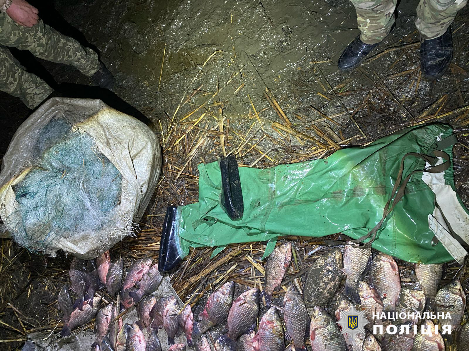 Кілька днів тому правоохоронці викрили 31-но та 47-ми річних братів з Болградської громади, які у комендантську годину, за порушення якої законодавством досі не передбачена відповідальність, у спеціальних гумових костюмах для риболовлі витягували з водойми десять ліскових сіток з біоресурсами. Викликана на місце події слідчо-оперативна група територіального підрозділу поліції вилучила у правопорушників в якості речових доказів 750 метрів ліскової сітки та більше 100 одиниць риби, серед якої карась, сазан, окунь та 27 раків. За попередніми підрахунками фахівців-екологів, чоловіки завдали рибному господарству України збитків на суму понад 270 тисяч гривень.