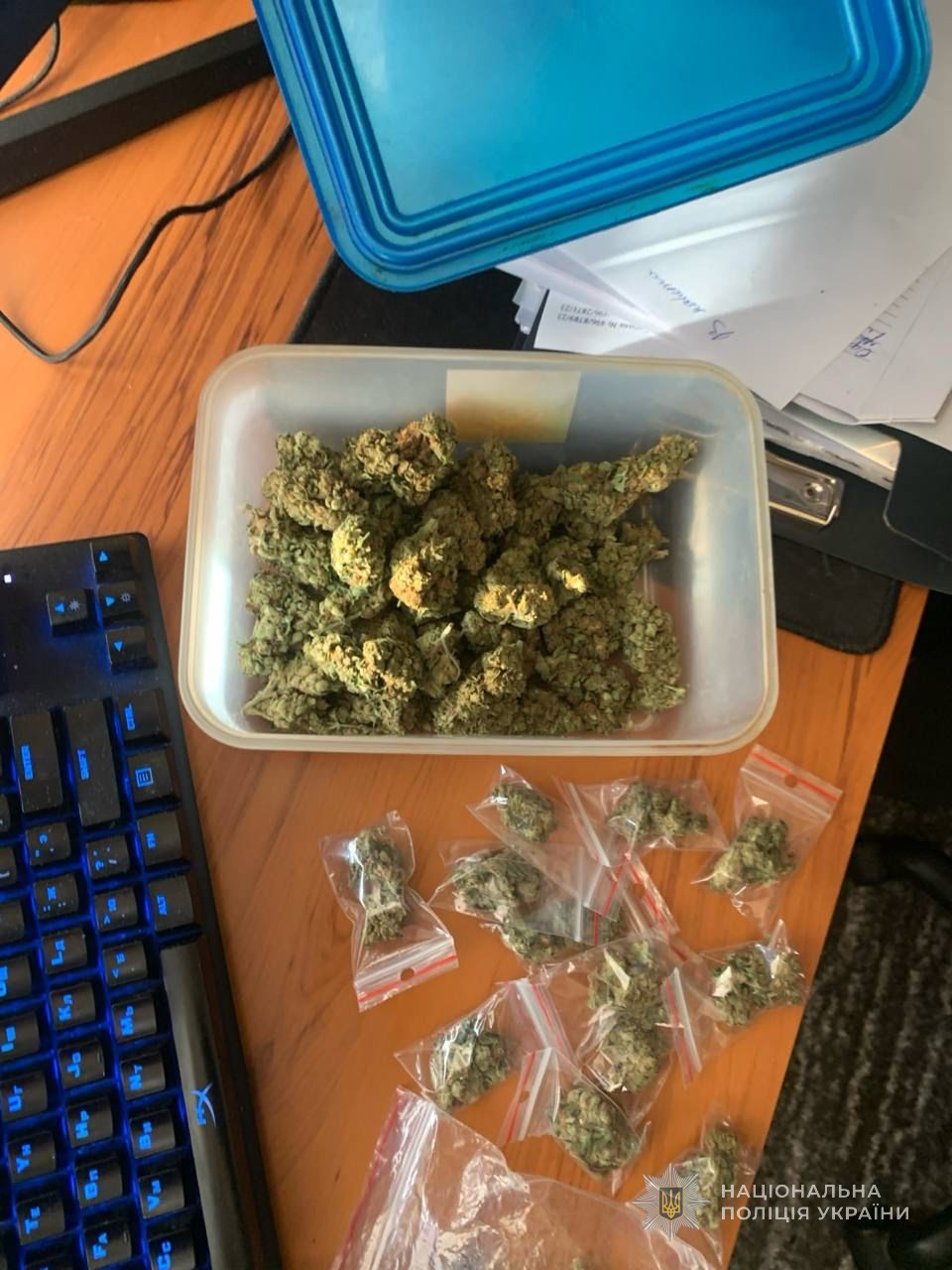 Поліцейські задокументували, як один з фігурантів збув «клієнту» два грами канабісу. Одночасно за місцем мешкання іншого фігуранта, у якого, за даними слідства, закуповувався «товар» для перепродажу, поліцейські провели обшук, в ході якого вилучили пластиковий контейнер та 13 пакетиків з аналогічною рослинною речовиною, ваги і пакувальний матеріал.