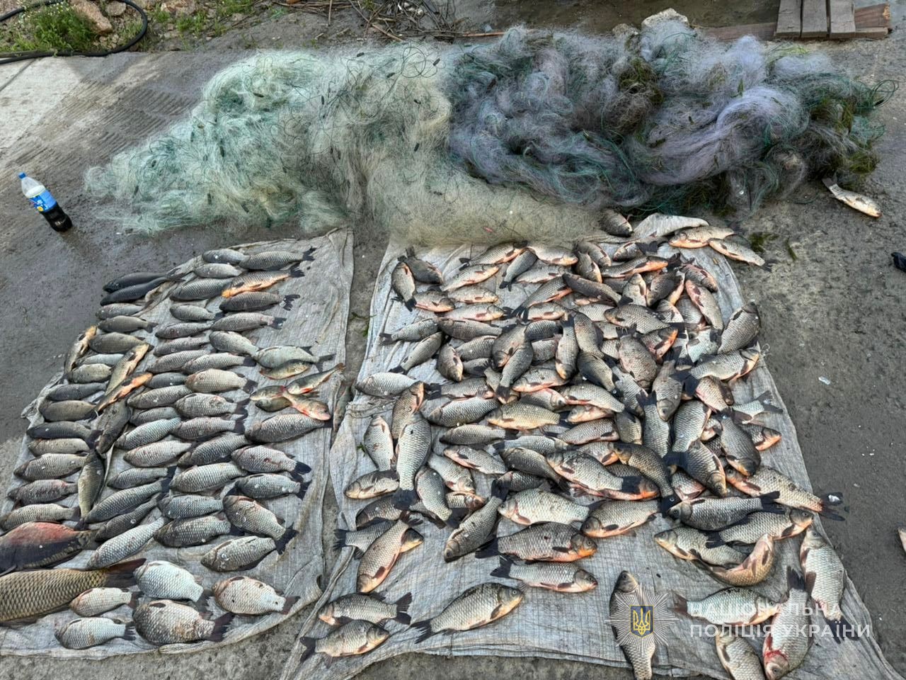 Викликана на місце події слідчо-оперативна група територіального підрозділу поліції вилучила у правопорушника в якості речових доказів 1200 метрів ліскової сітки, човен та більше 200 одиниць риби, серед якої карась, сазан, окунь та лящ. Незаконний улов на час проведення досудового розслідування поліцейські передали на зберігання до спеціалізованого підприємства.