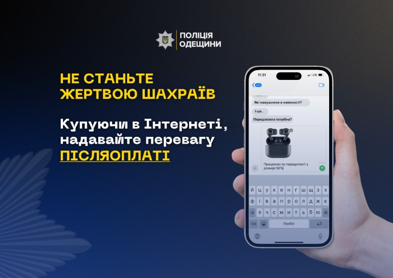 Поліцейські вкотре наголошують: щоб не потрапити у подібну ситуацію, замовляйте товар у незнайомих вам і неперевірених продавців лише за наявності післяплати. Якщо продавець не погоджується на таку умову, відмовтеся від покупки і пошукайте іншого реалізатора.